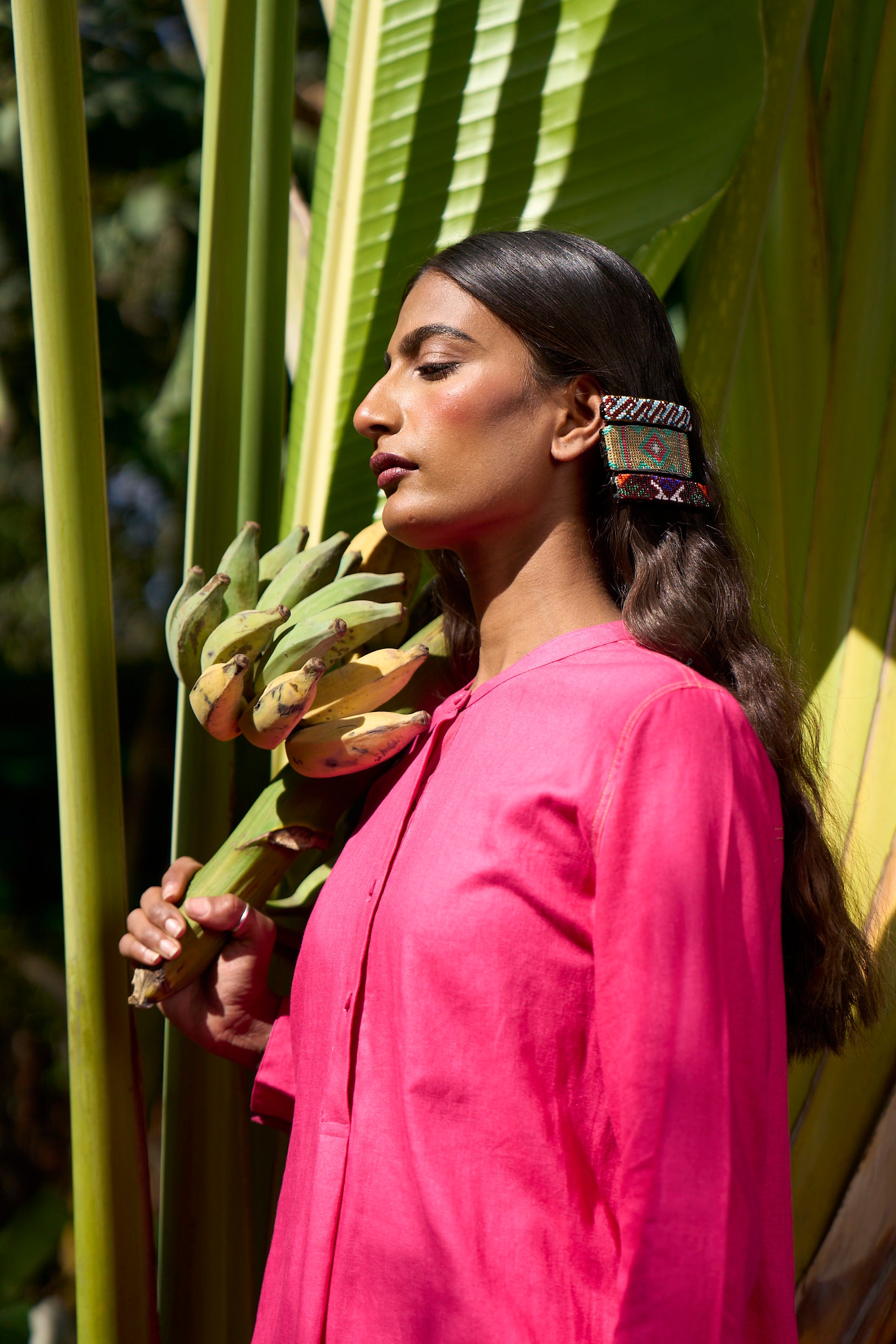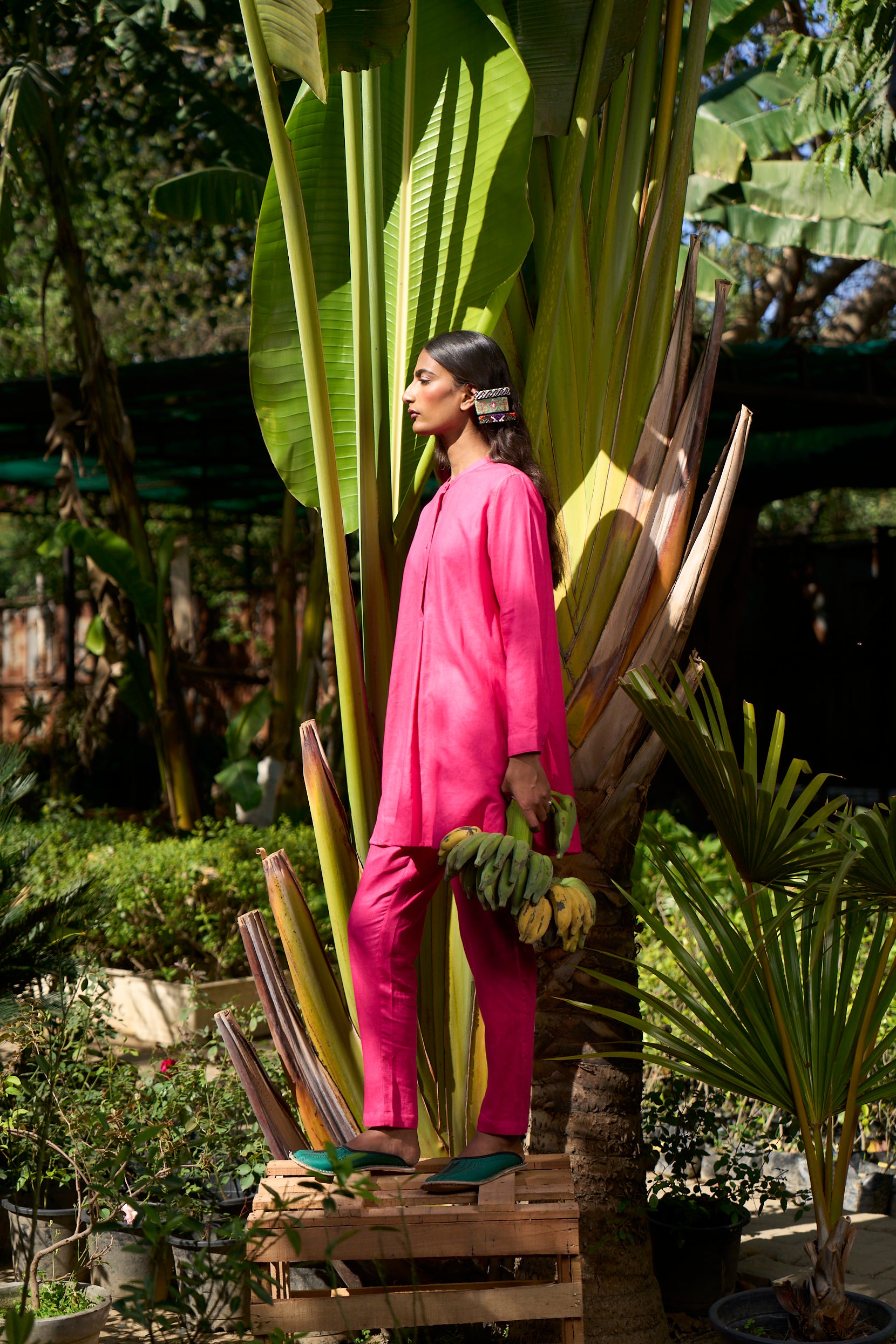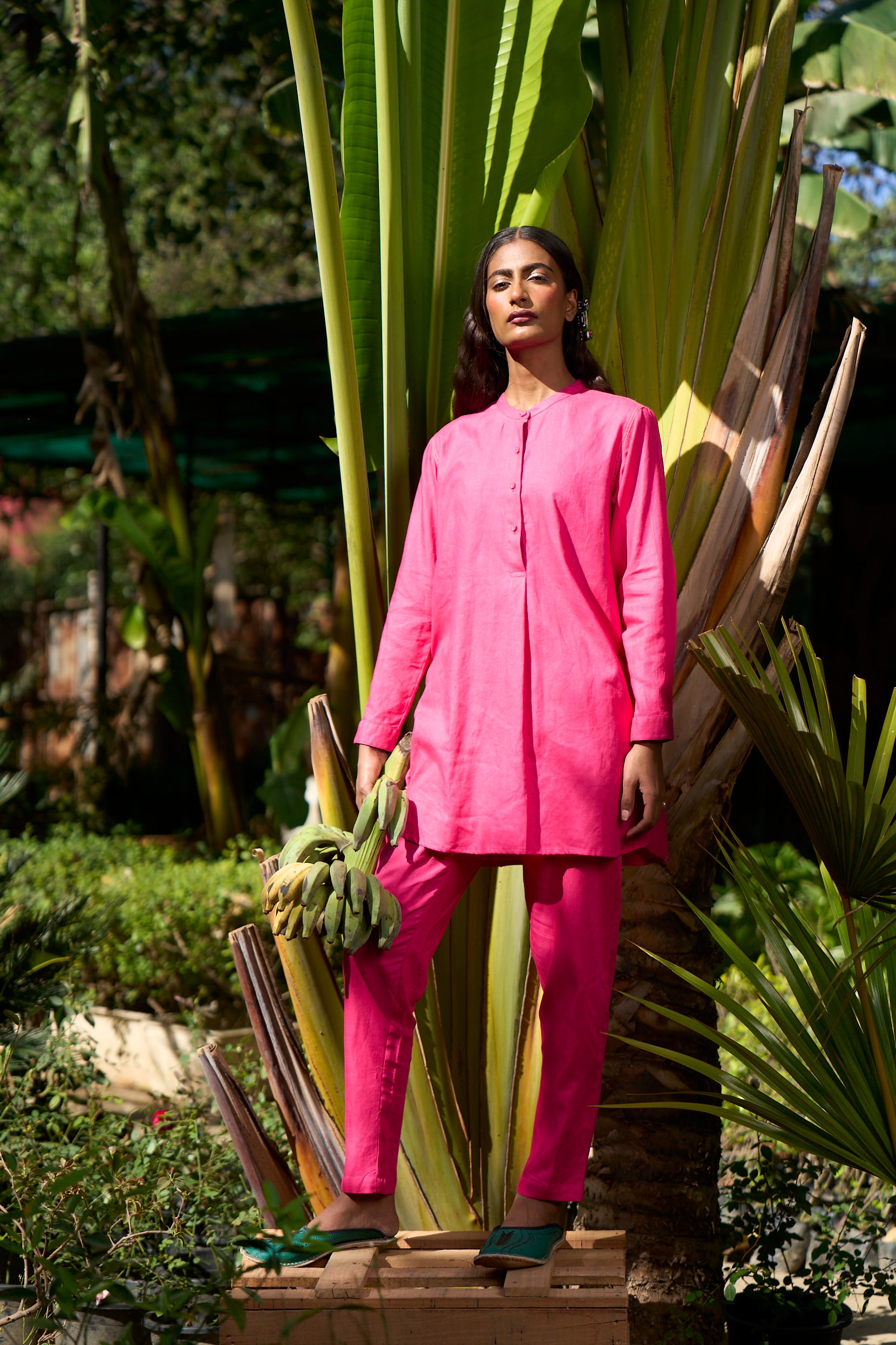 Indulge in the everyday luxury and comfort of this beautifully crafted Adora tunic pant set. Made from hemp blend, this tunic boasts elegant placket details. The medium weight hemp straight pants complete the look. Elevate your wardrobe with this sophisticated and exclusive coord set in a bright and fun colour.