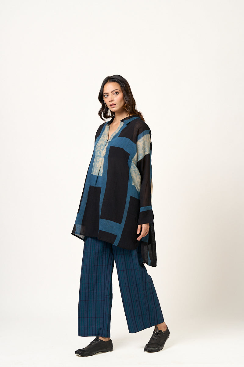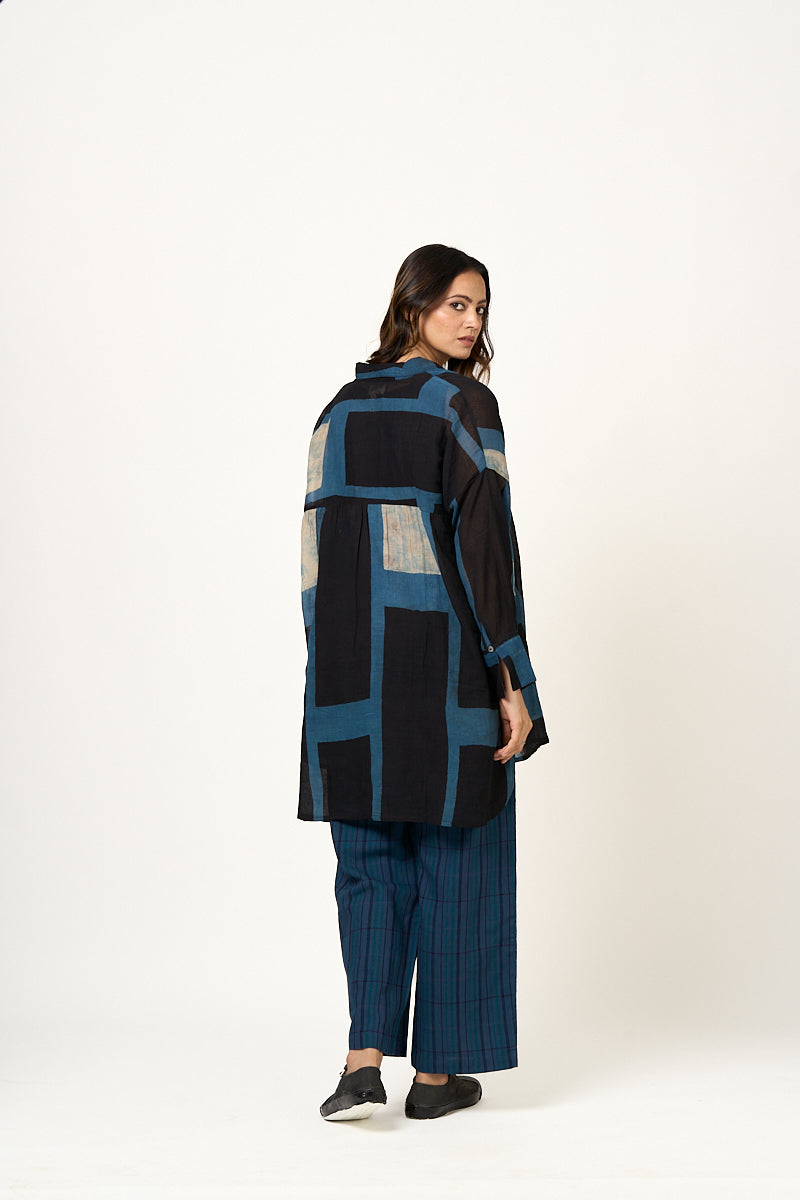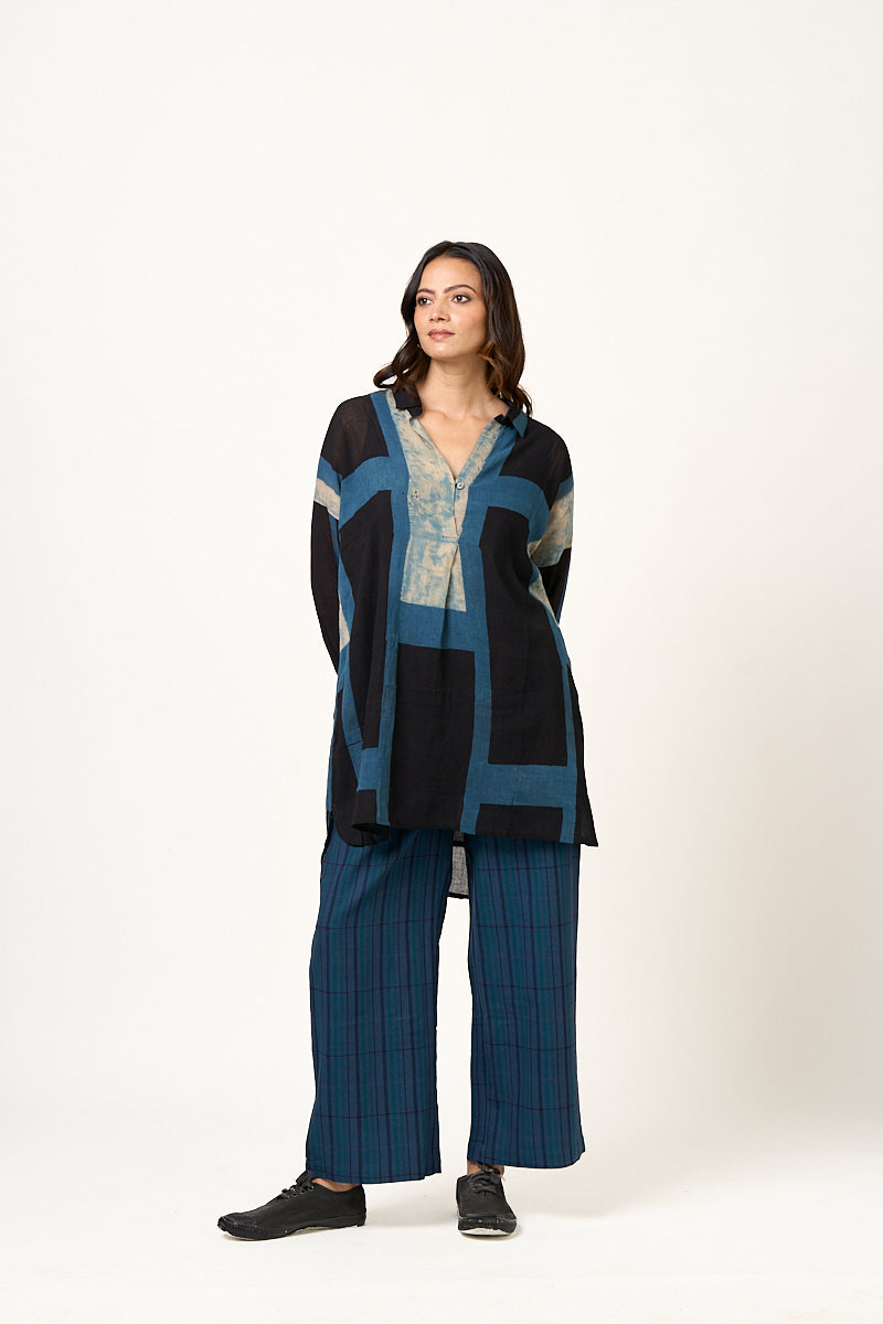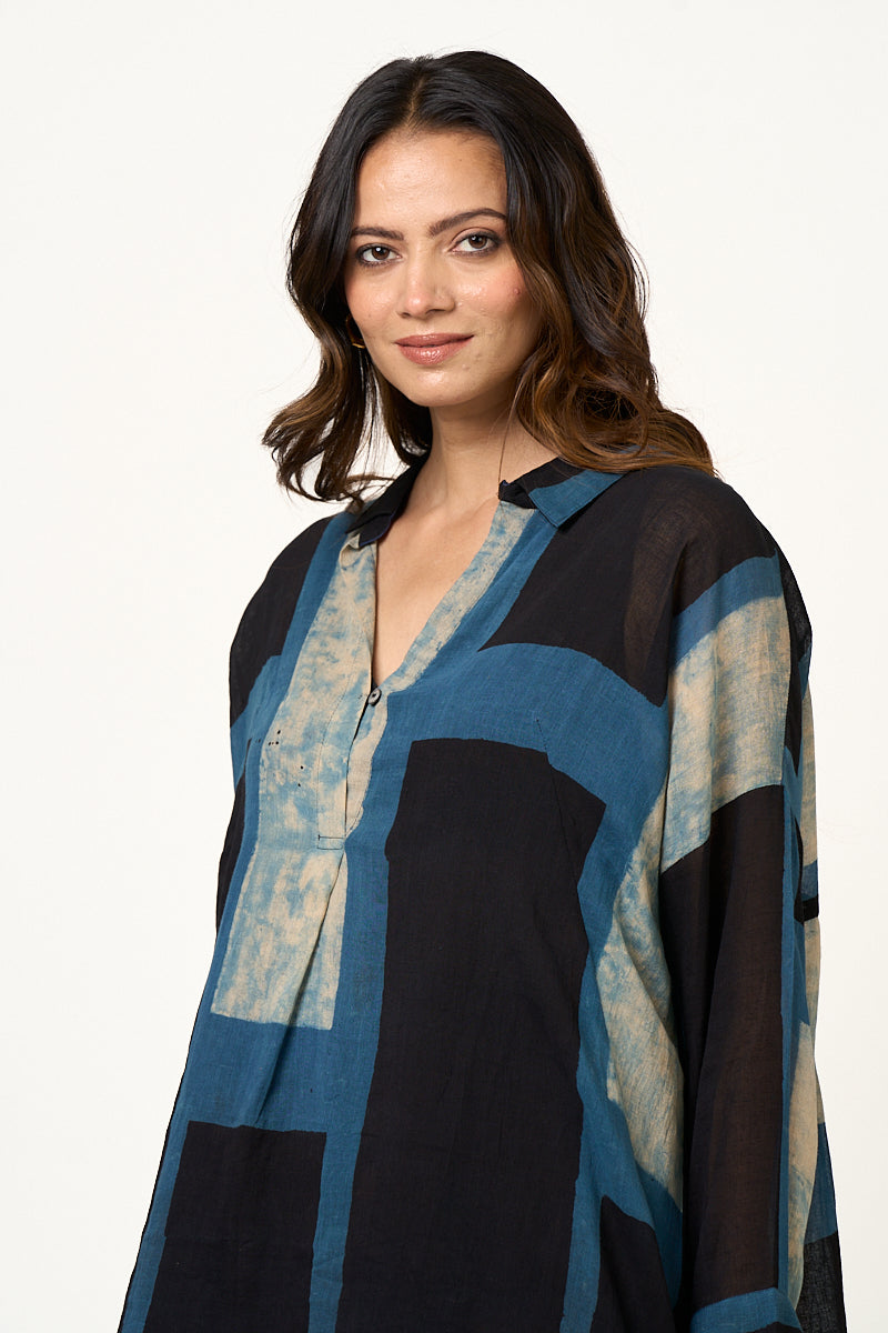 Azul Indigo Black Abstract block tunic