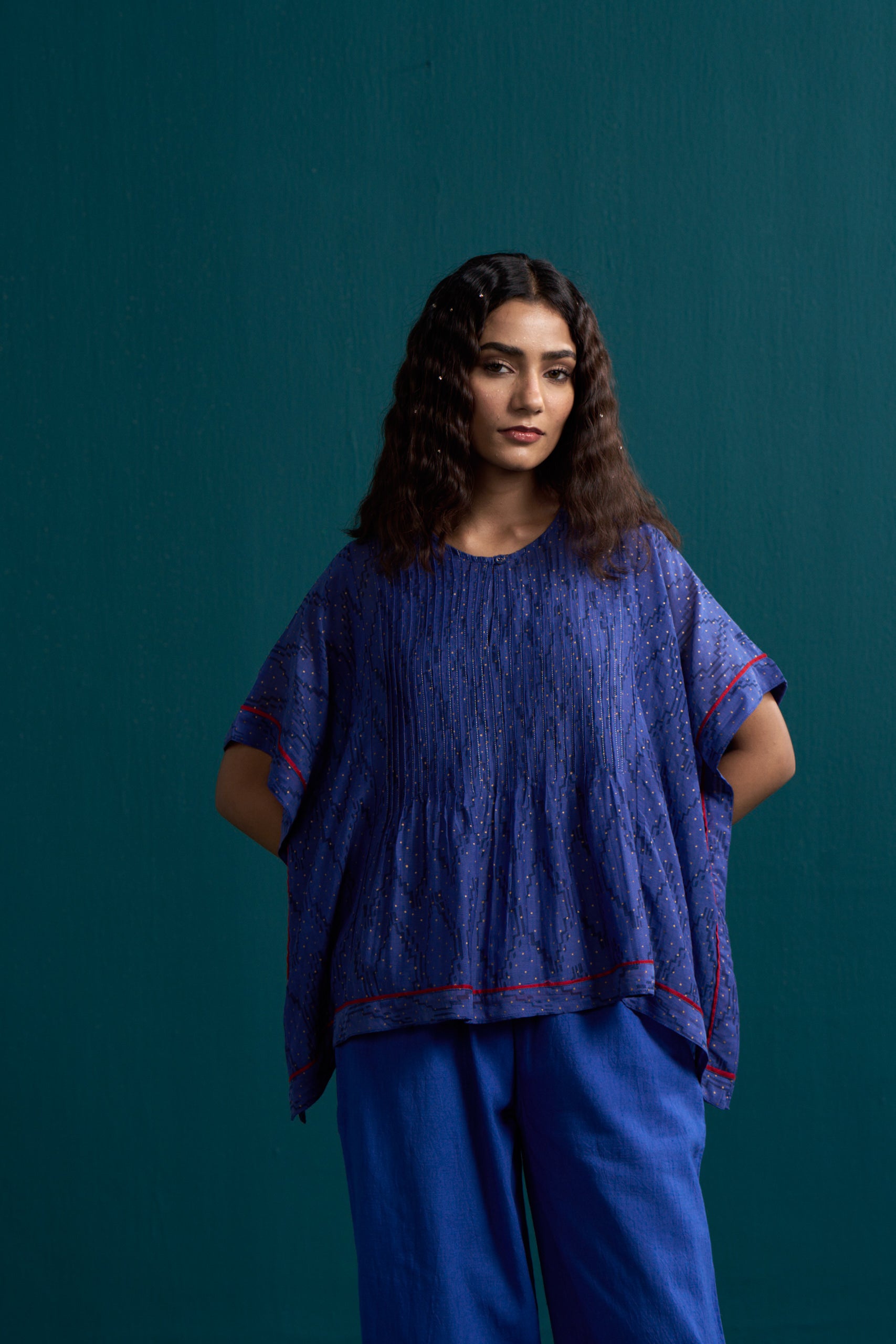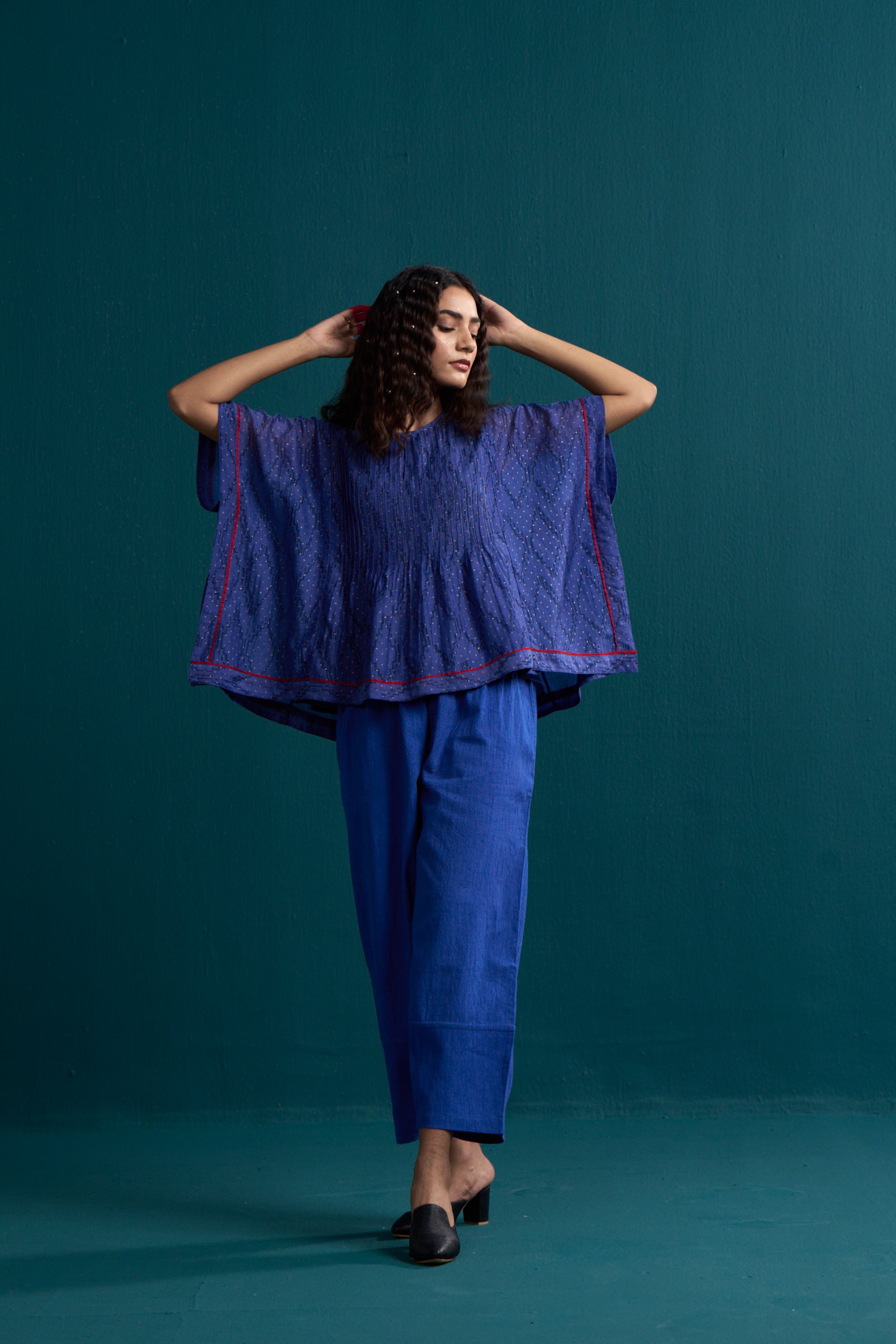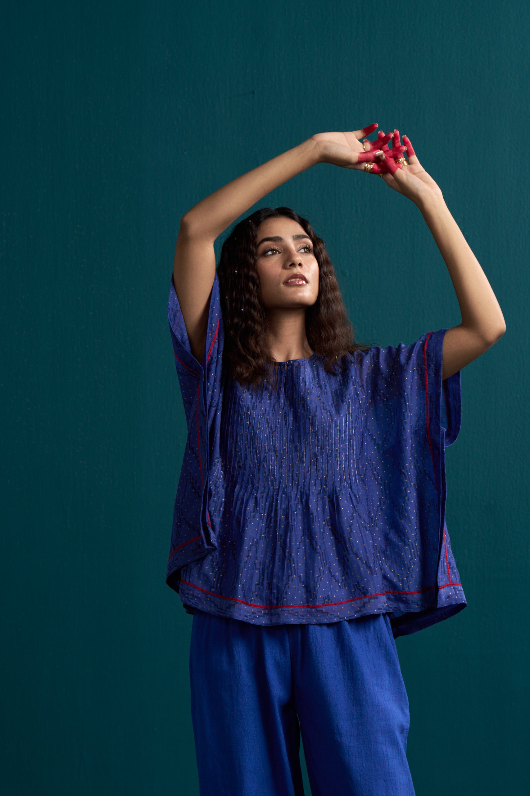 Introducing our Azure printed chanderi kimono shirt, a stylish and hand crafted piece that combines the luxury of silk cotton with a relaxed, kimono top design. Its fun style and detailed print will add a touch of sophistication to any outfit. Elevate your wardrobe with this exclusive piece.