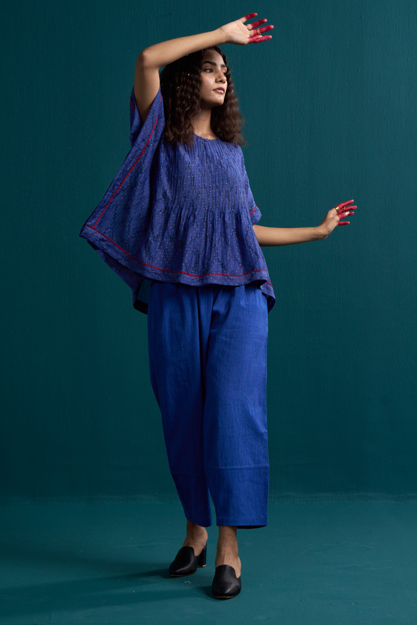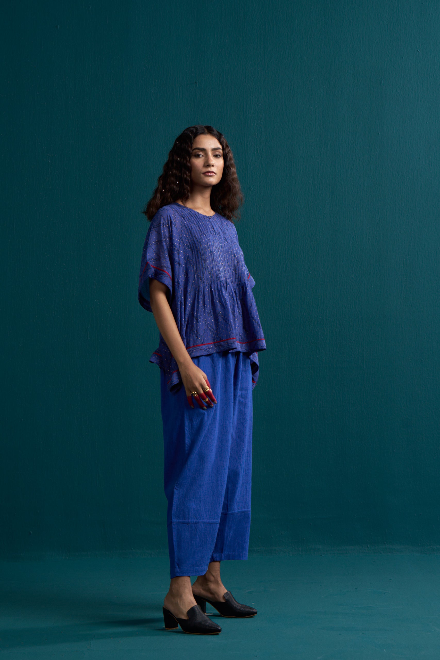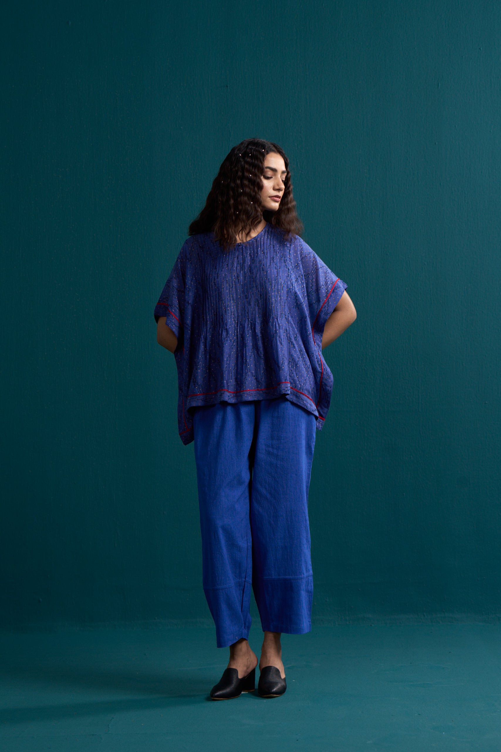 Introducing our Azure printed chanderi kimono shirt, a stylish and hand crafted piece that combines the luxury of silk cotton with a relaxed, kimono top design. Its fun style and detailed print will add a touch of sophistication to any outfit. Elevate your wardrobe with this exclusive piece.