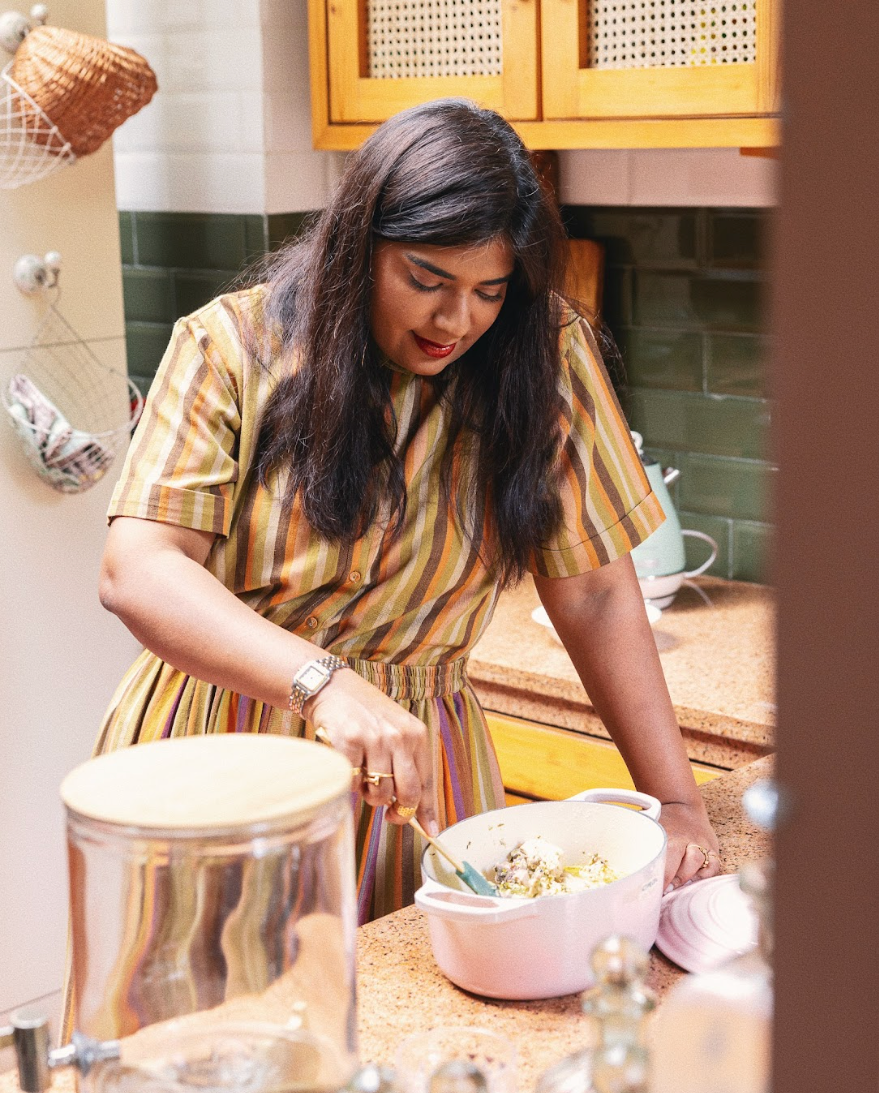 Check out Chef Bani Nanda in our favourite summer coord. The Perla Crop Top & the Lorena skirt teamed together for that perfect blend of chic and cool, adding effortless style to your summer wardrobe. Its versatile design allows for easy pairing, making it a must-have for those on the move. Stay stylish and comfortable all season long with this trendy top.