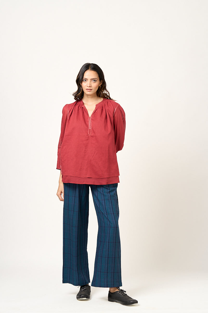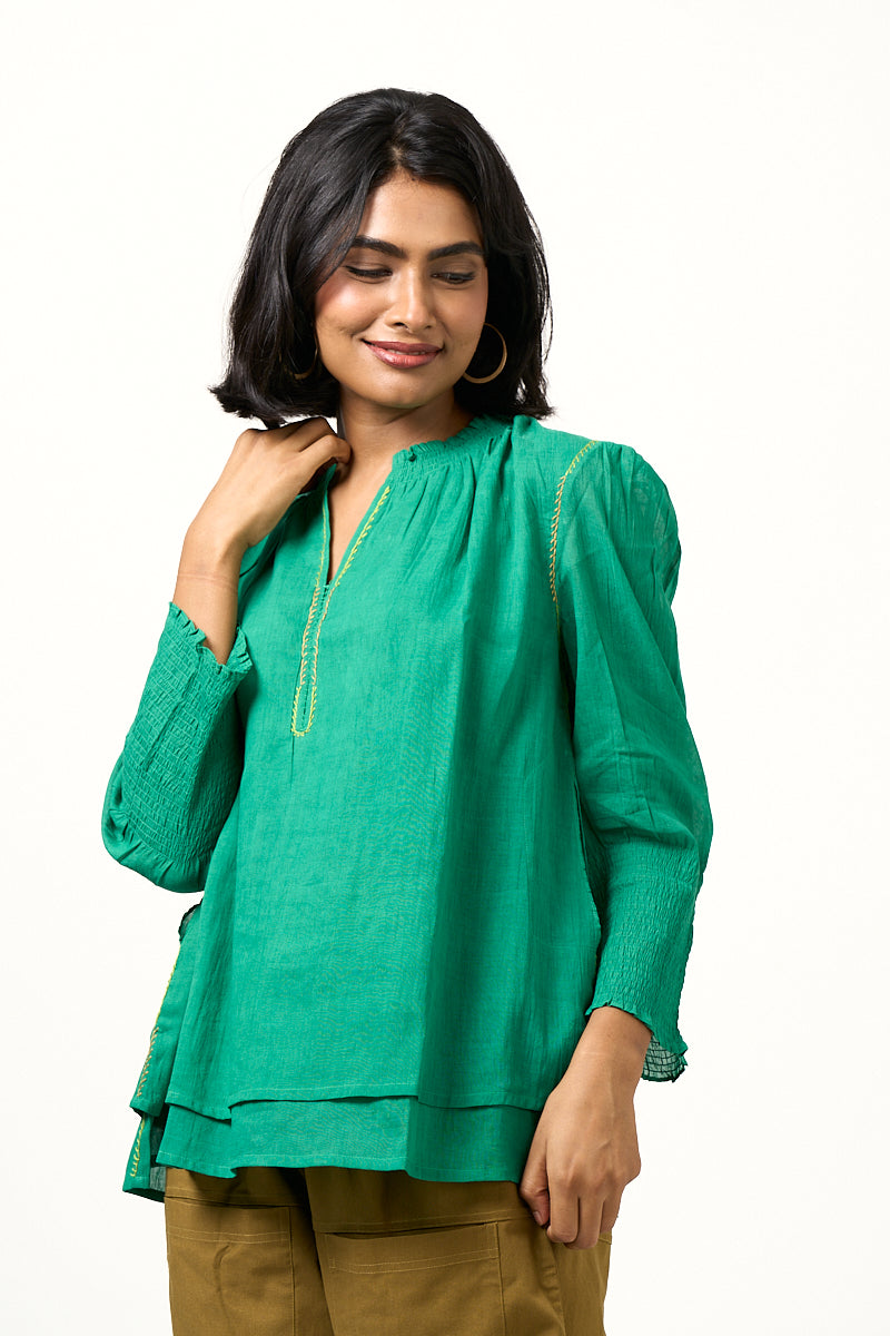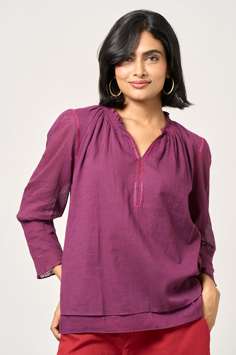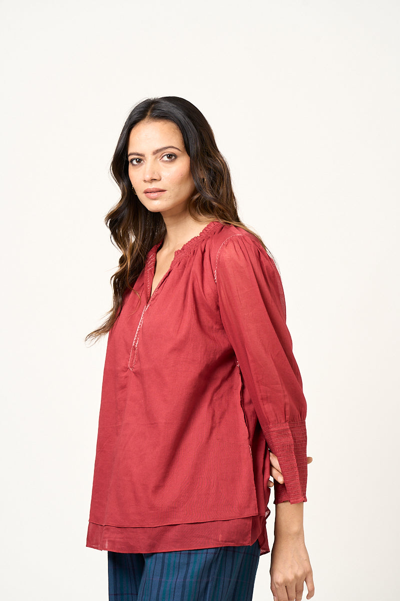 Our natural mulmul Bianca top with a delicate ruffle neck and smocking detail is a classic summer top, easily teams up with a pair of jeans, linen pants or skirts. Perfect as you go strolling by the sea, or just sipping coffee and relaxing.