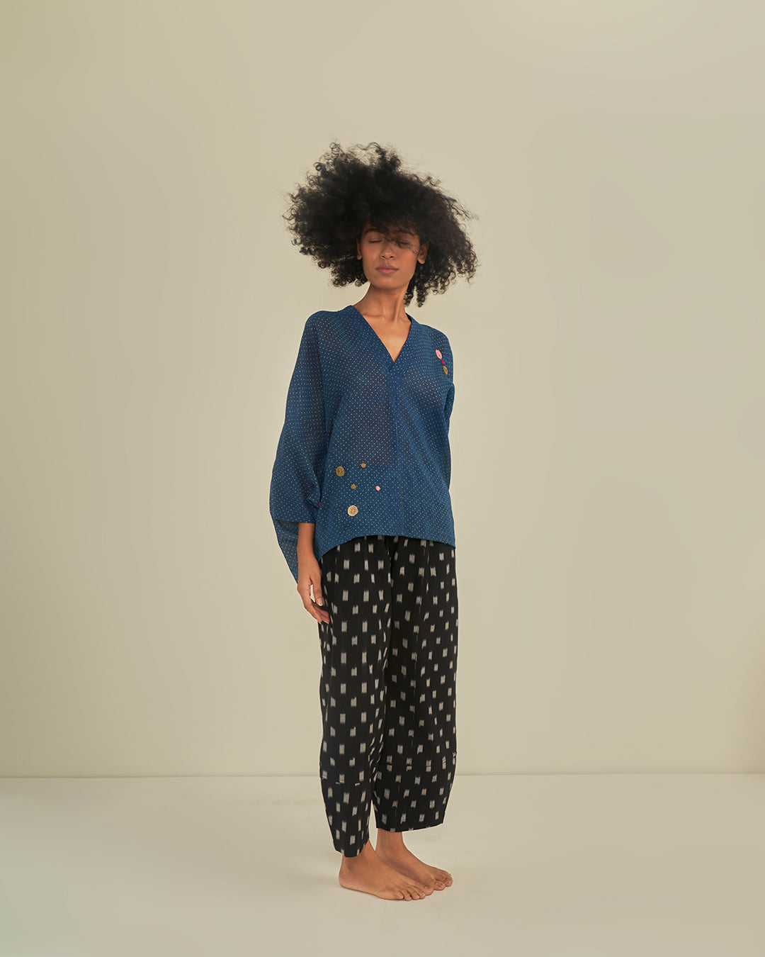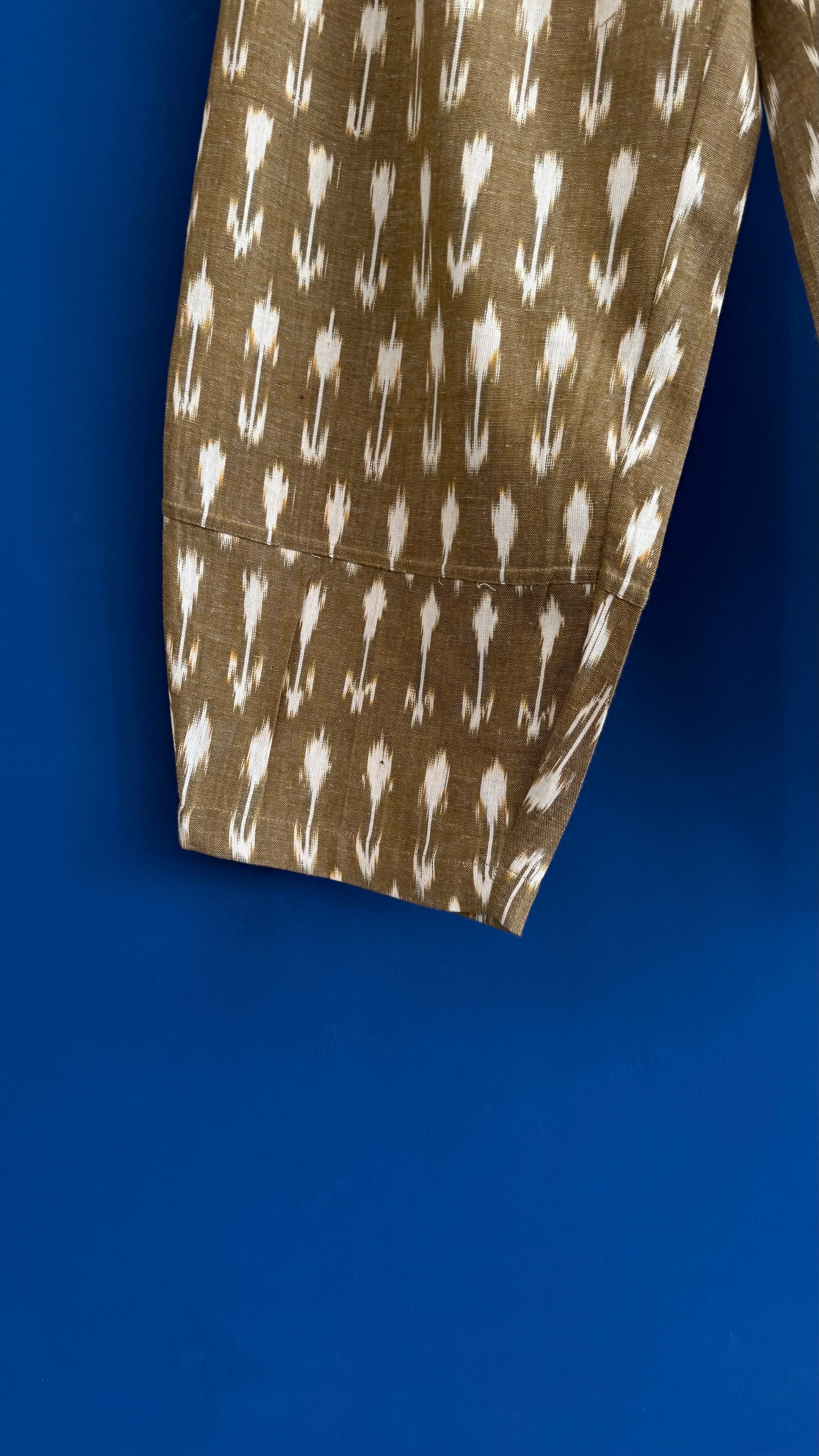 The Carlo handwoven ikat baggy pants are comfortable and easy, with side seam pockets and a unique shaped bottom cuff feature allowing ease of movement. Elasticated waist for better fit. Ease, comfort and functionality are key to Indigene style and these pants is hand woven stripes fit right in the philosophy.