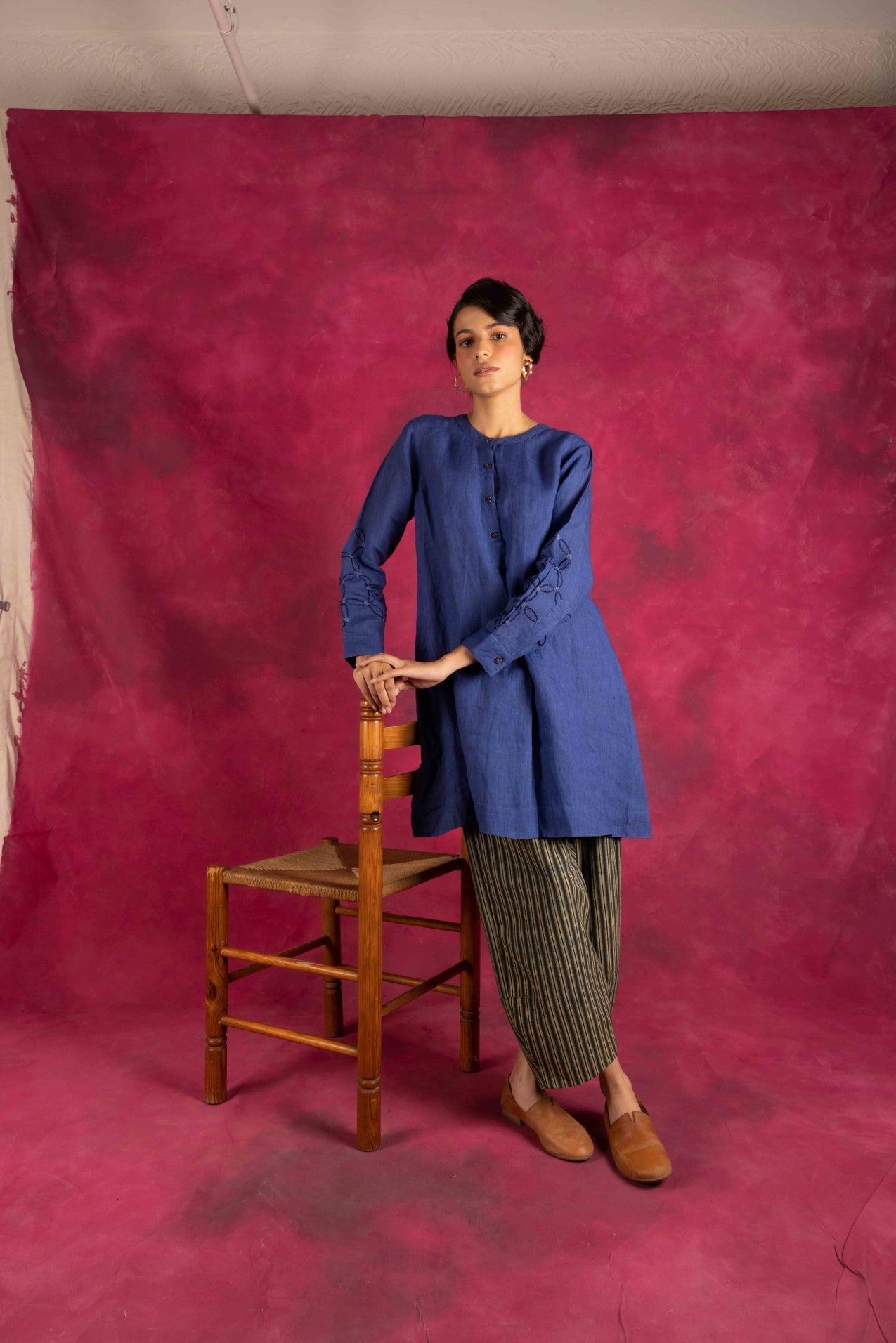 Cobalt Linen Placket Tunic & Zest Baggy Pants