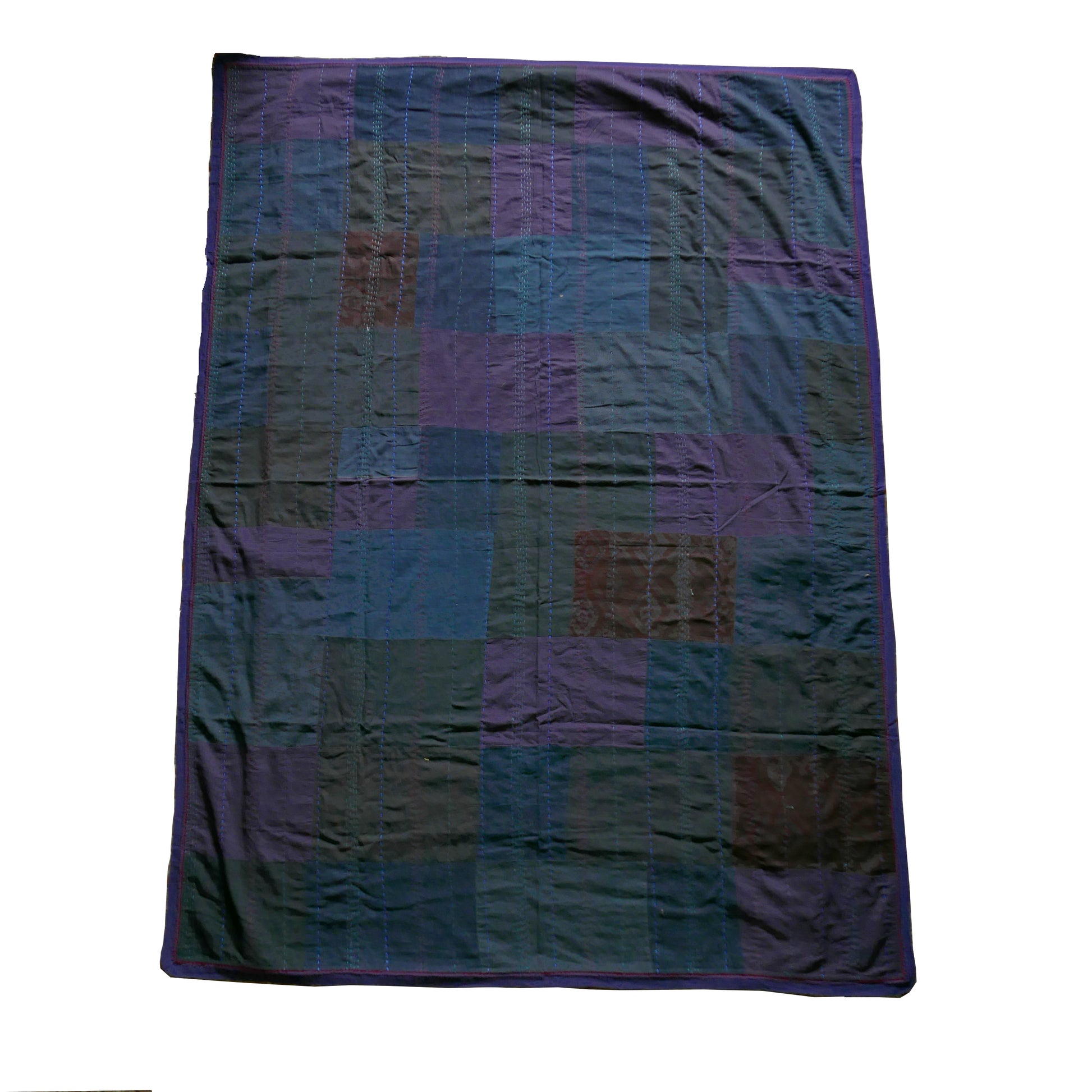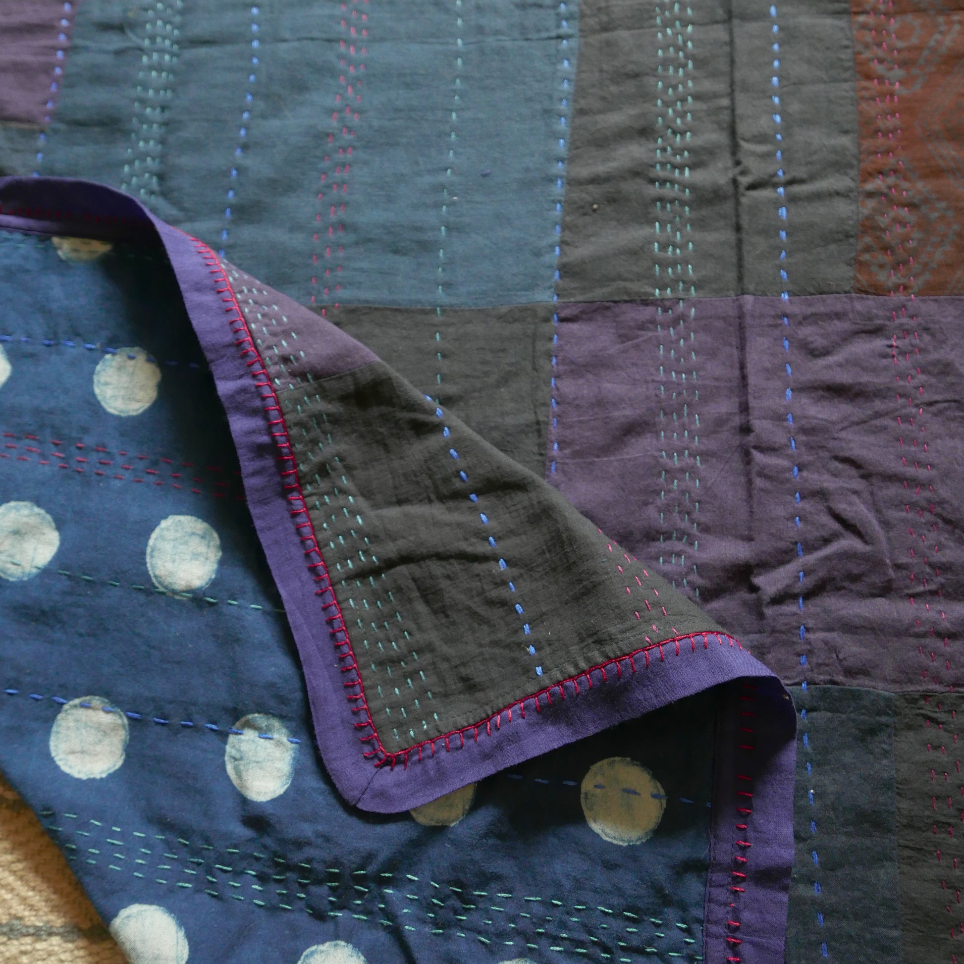 Aubergine Indigo Patch Embroidered Throw / Quilt (MADE TO ORDER)