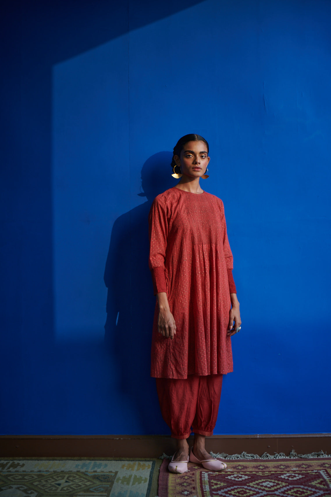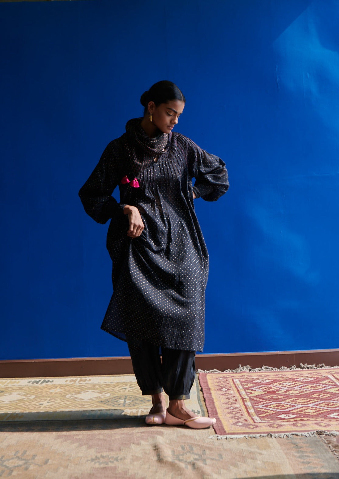 Our gathered bottom shalwars are a modern take on the traditional shalwars. These are easy, contemporary and go as well with your kurta as with any other garment you'd like to team with. The shalwar pants are comfortable and easy with a gathered bottom hem featured here, allowing ease of movement. Ease, comfort and functionality are key to Indigene style and these pants is hand woven stripes fit right in the philosophy.