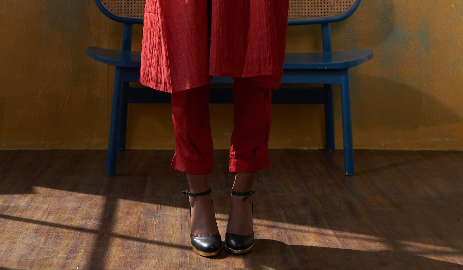 Our pleated shalwars are a modern take on the traditional shalwars. These are easy, contemporary and go as well with your kurta as with any other garment you'd like to team with. The shalwar pants are comfortable and easy with a unique pleated bottom featured here, allowing ease of movement, a more shaped and tapering feel. Ease, comfort and functionality are key to Indigene style and these pants is hand woven stripes fit right in the philosophy.
