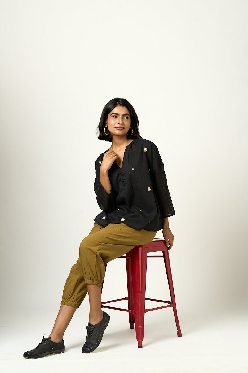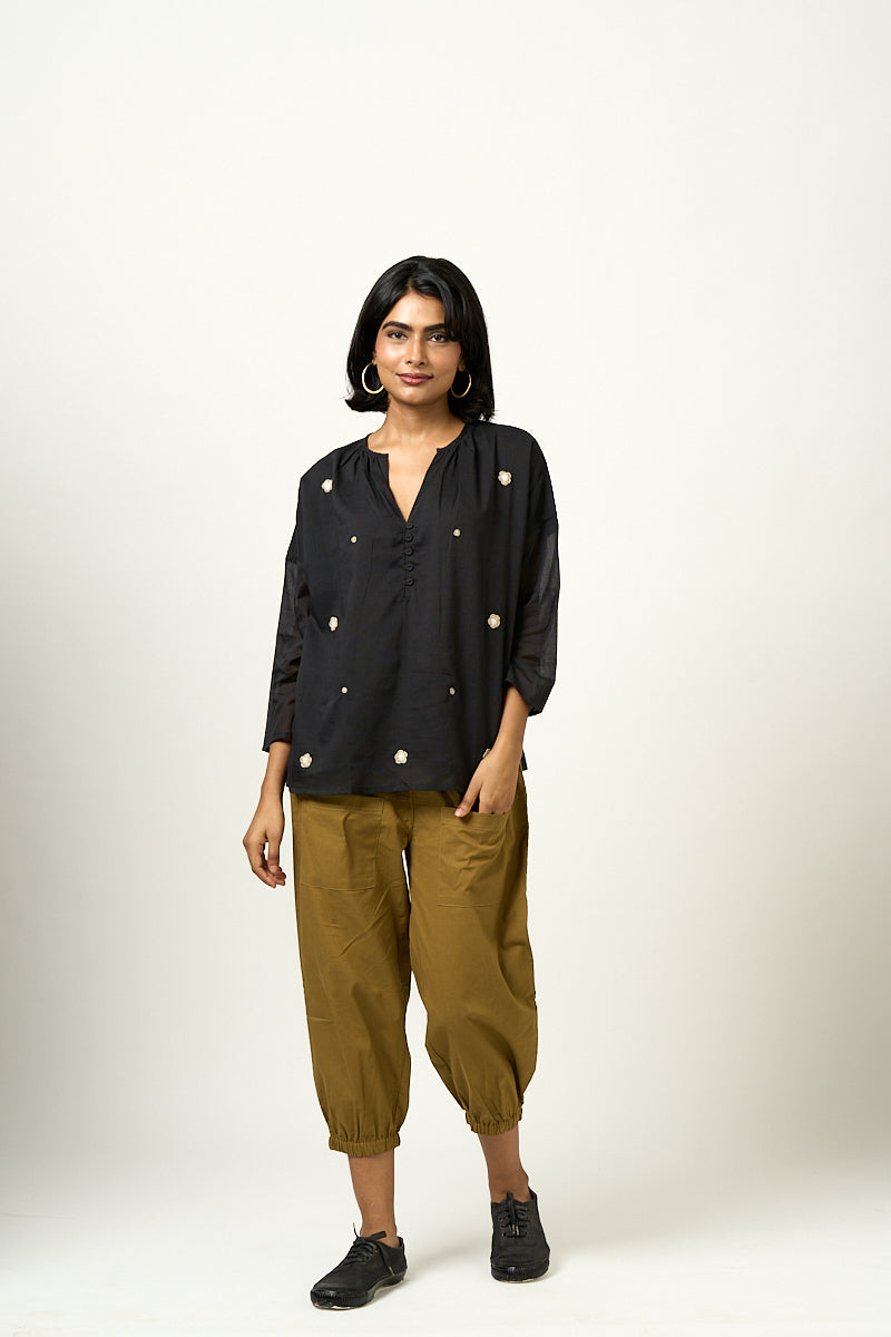 The gathered neck cotton top proves to be a super versatile companion, and a easy wear. Light as a feather, easy to pack and multi optional. Wear it pants, shorts, skirts, practically anything and get ready for a little trip to the market. Perfect anytime of the day.