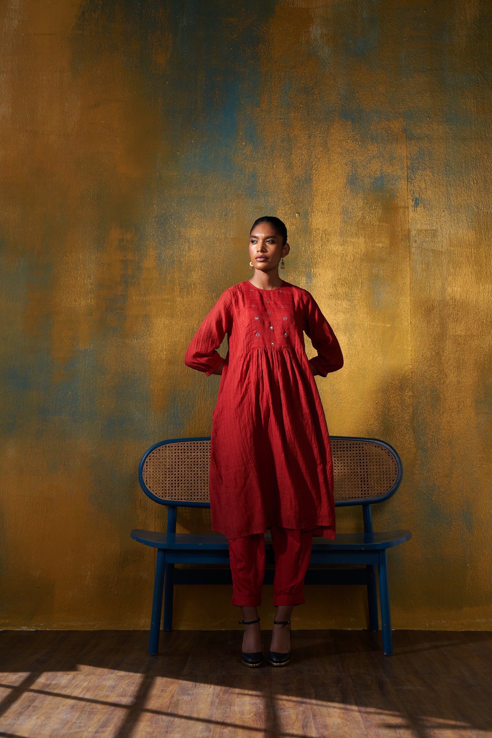 Gul Kaamdani Embroidered Chanderi Kurta & Pant set
