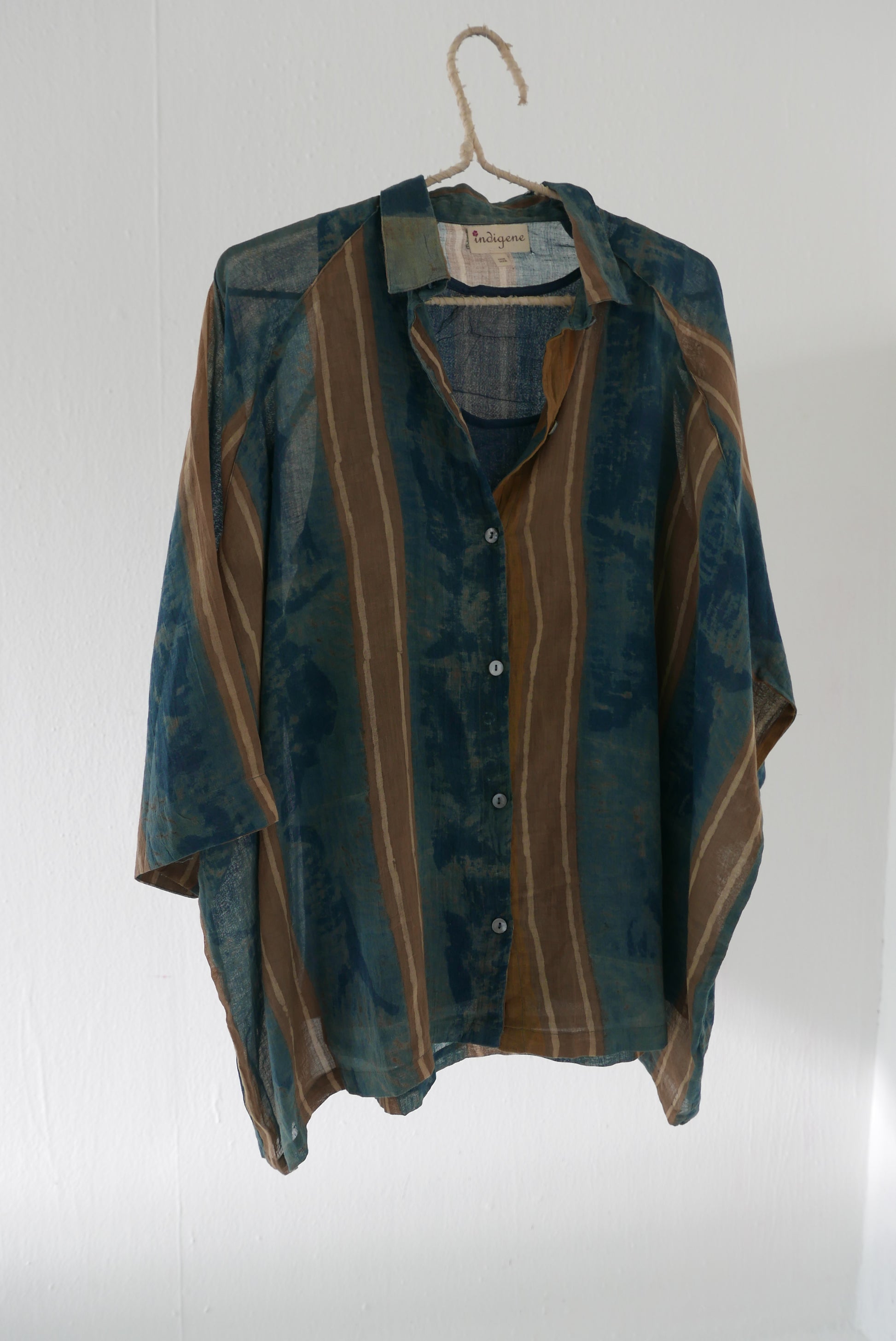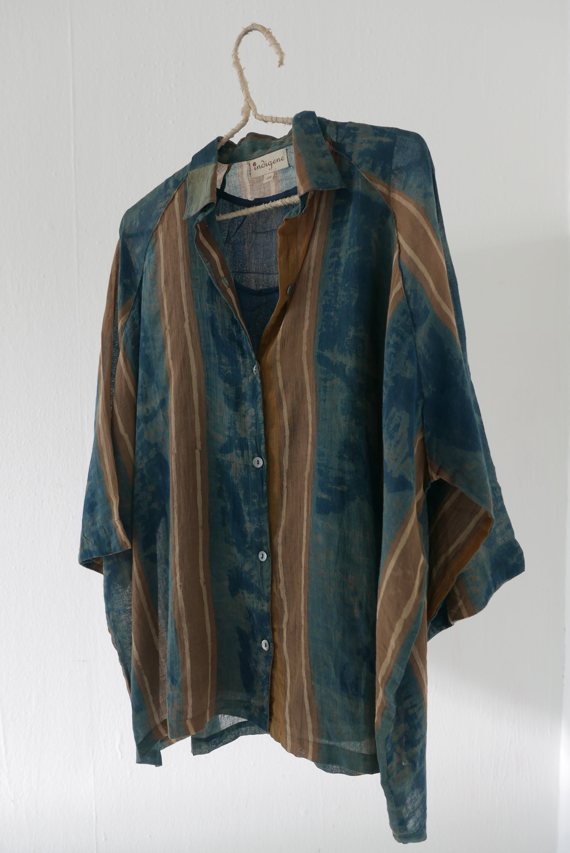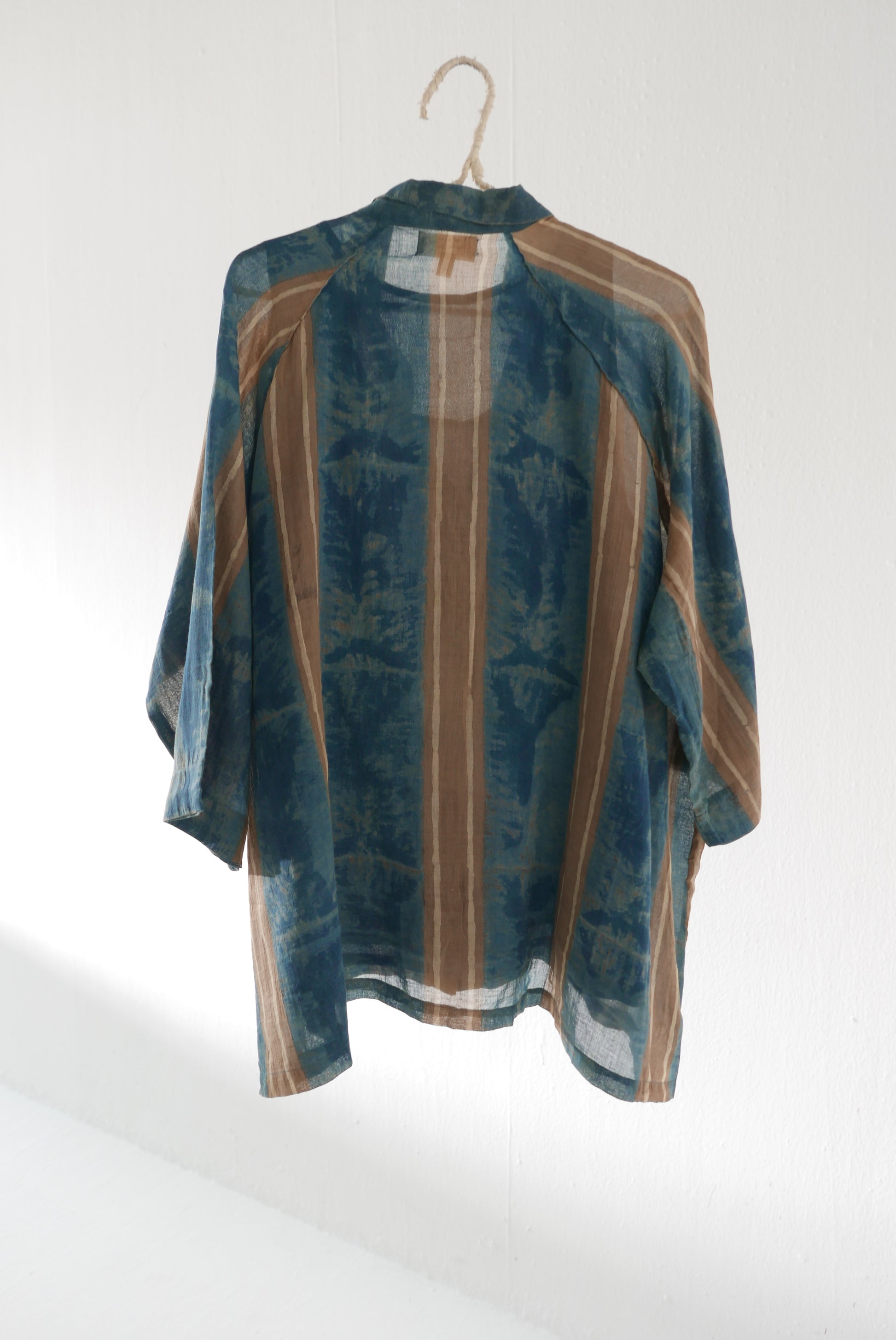 The madder blocks kimono shirt in handwoven cotton and hand painted ajrakh technique is unique to the core. Delicate and diaphanous, your perfect go to shirt, through the summer season.