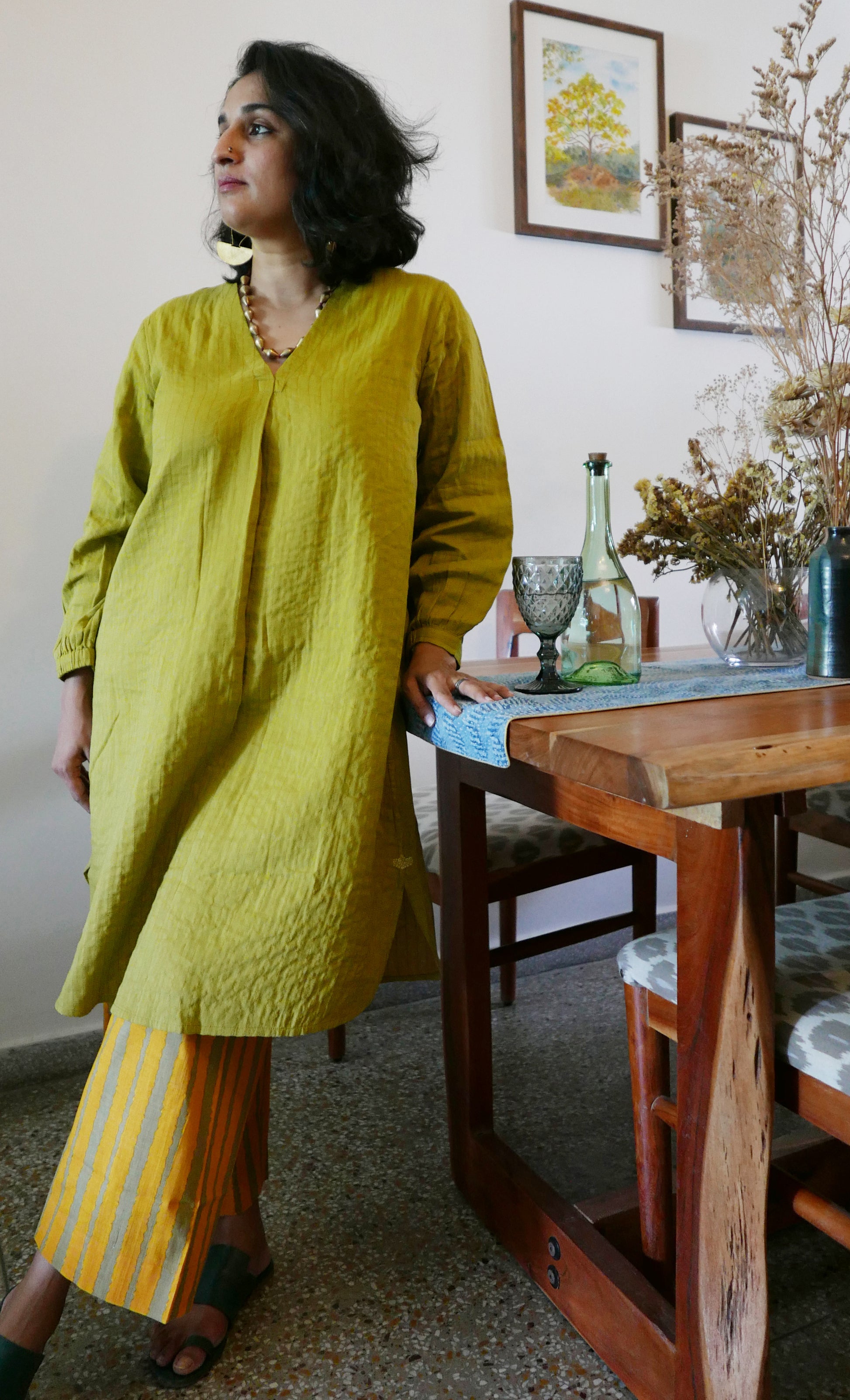Classic and comfortable, the Iris quilted tunic with impeccable stitching detail and hand embroidery is a must have. This versatile and the perfect wear it all day, every where set stands true to the sustainable ideology that Indigene stands for. Easy, comfortable, and versatile.