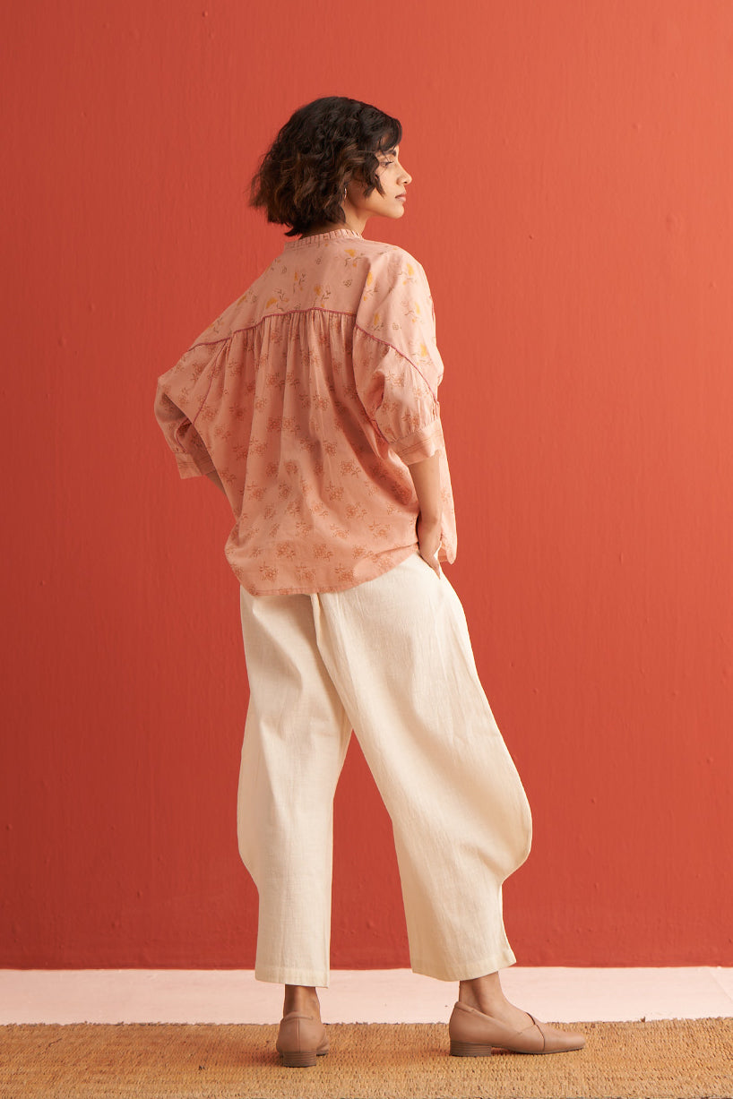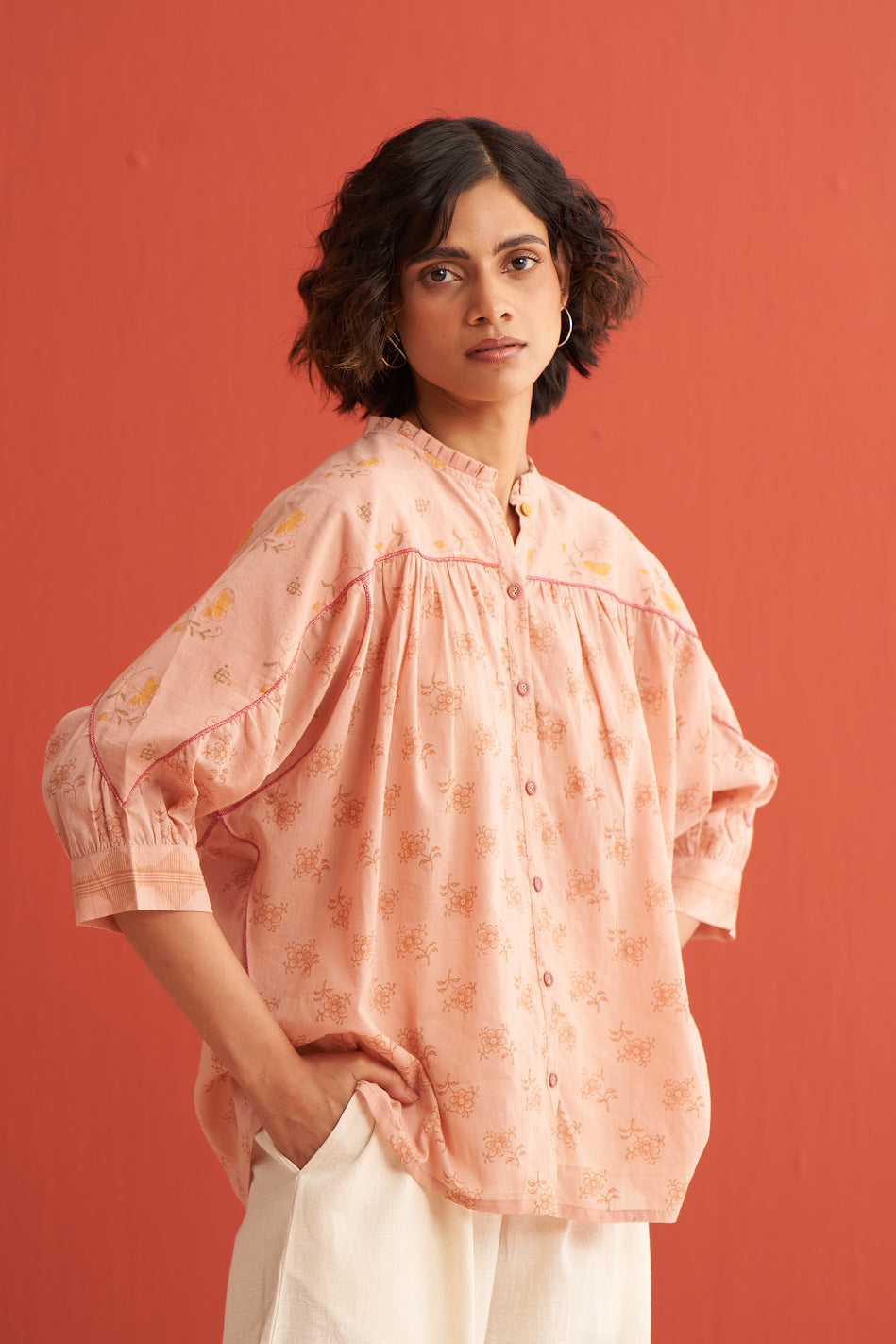 Indulge in luxury with our Joy hand block printed raglan top, inspired by royal Copenhagen porcelain prints. Made from 100% cotton mulmul, this top offers both comfort and style. Embrace the Danish concept of Hygge and find your happy place in this easy-to-wear piece.
