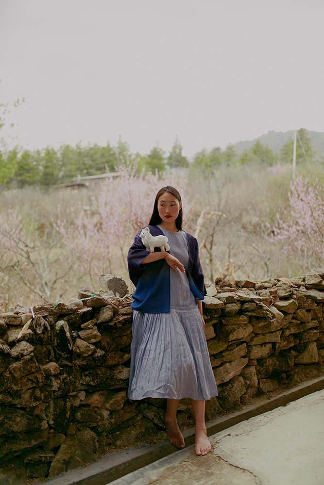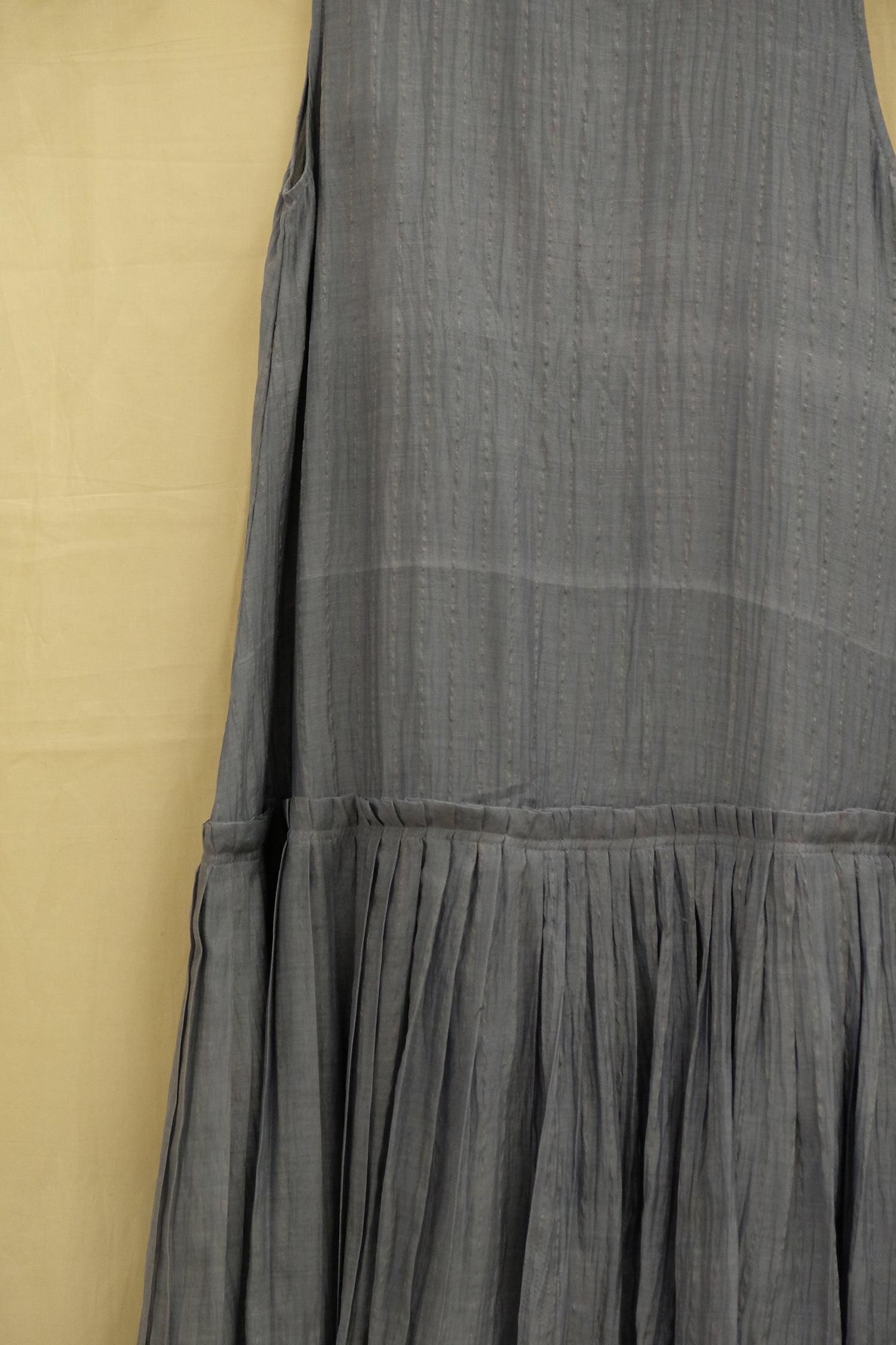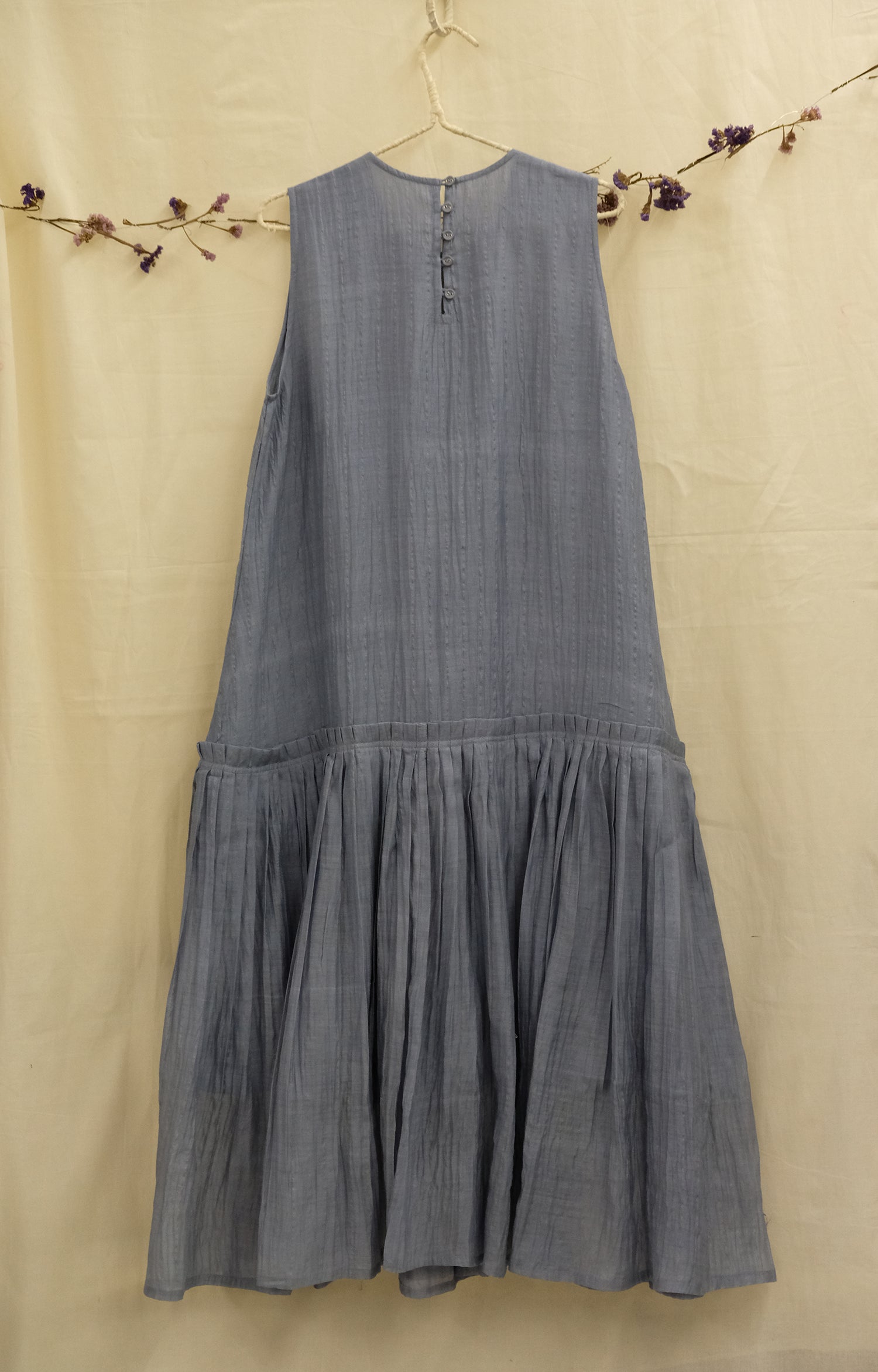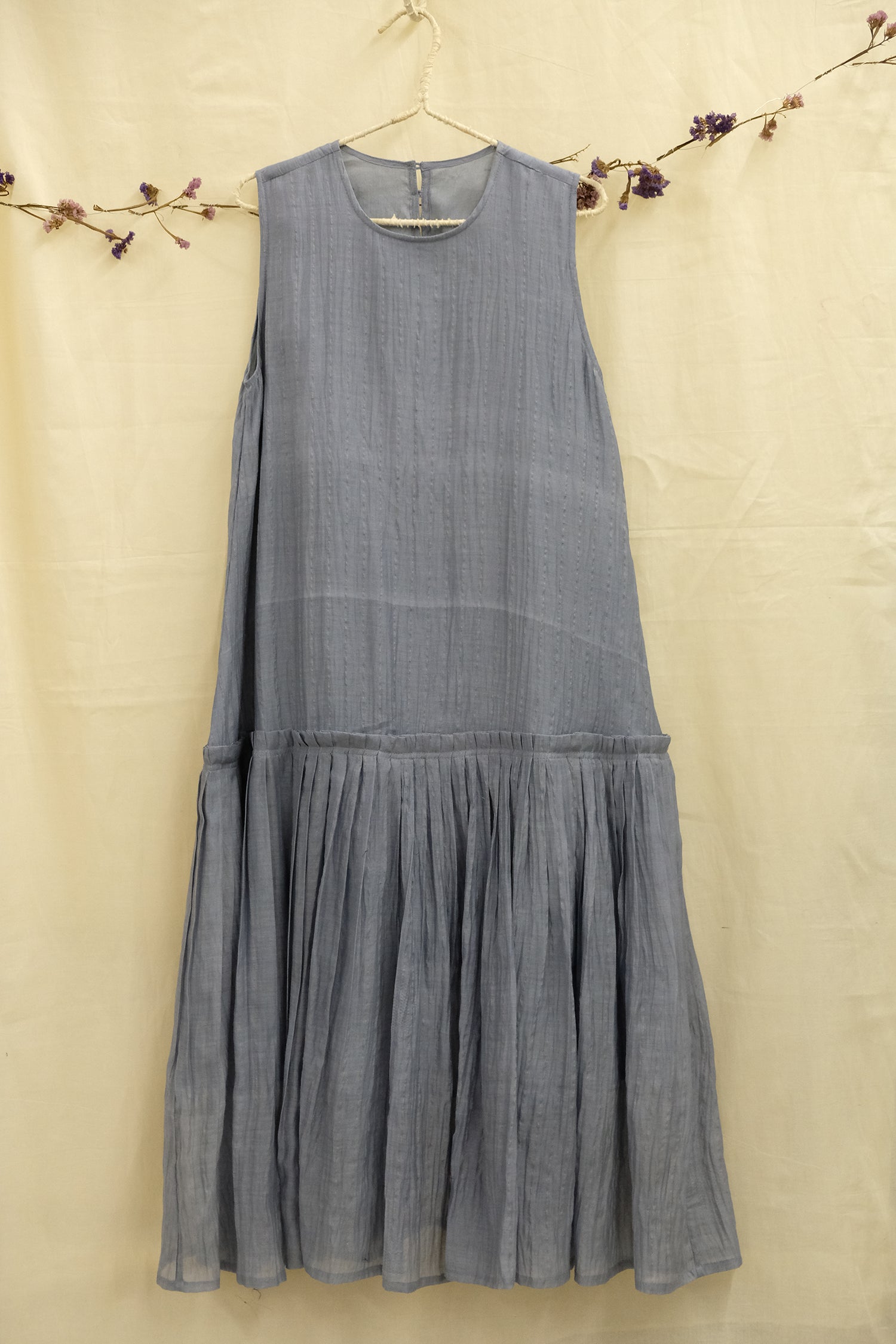 Look chic in our Linnaeus pleated hem, low waist sleeveless dress in soft chanderi. This dress makes for a perfect canvas to be set off with your favourite piece of jewelry, scarf or a jacket. Layer it with Evelyn Patchwork jacket and get set for the perfect soiree.