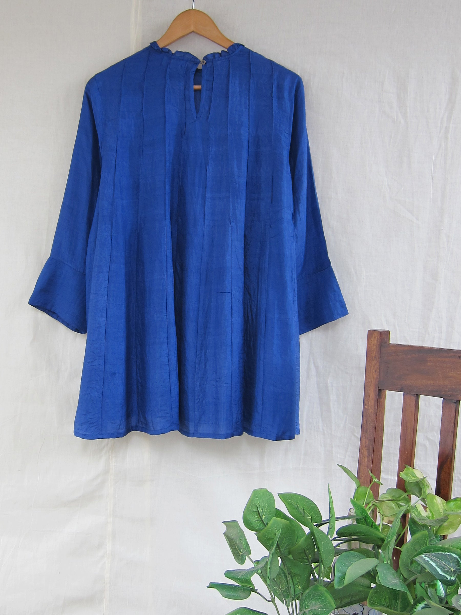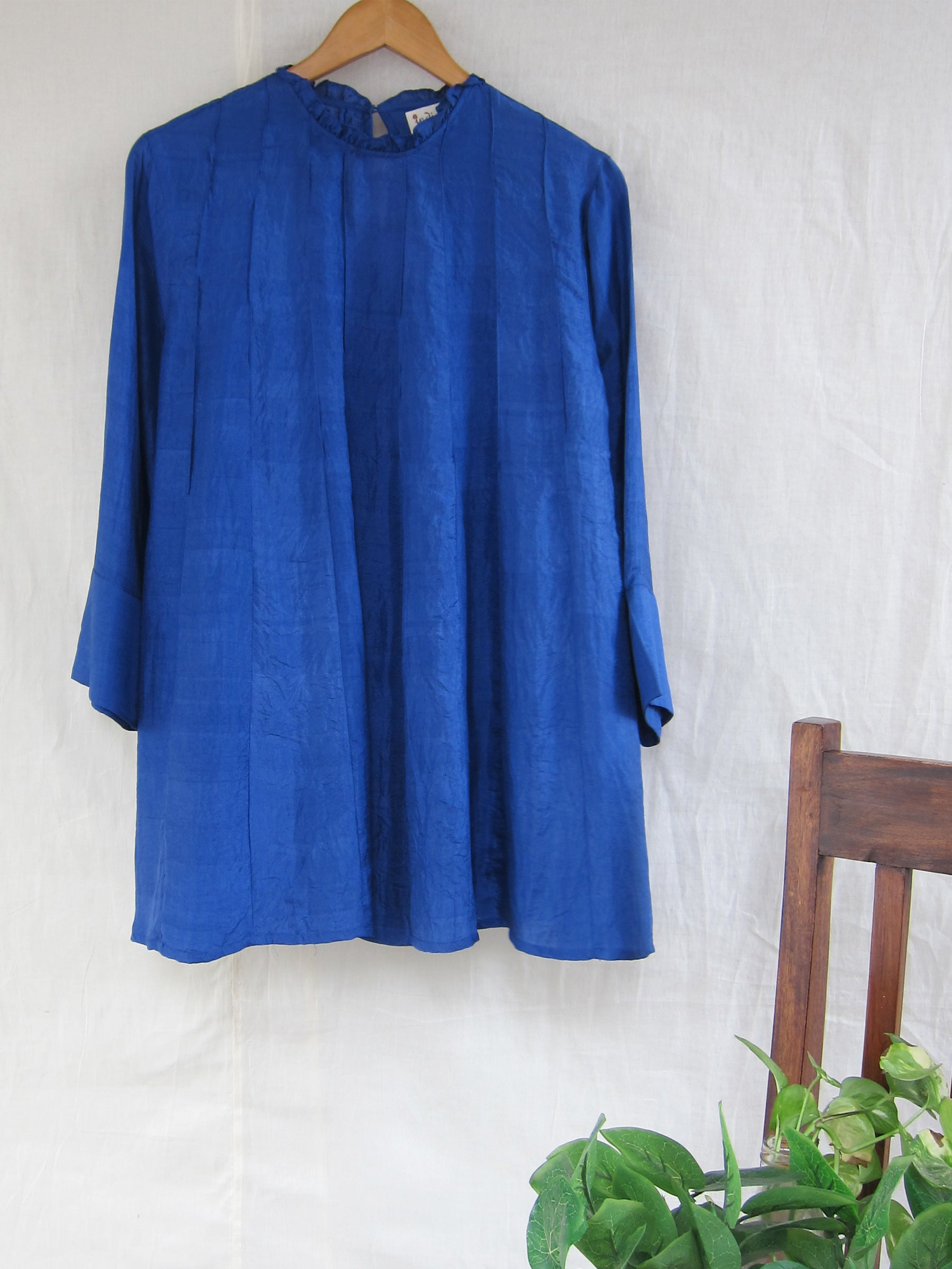 Our mulberry silk paneled blouse is a perfect choice for an evening out. This diaphanous fabric is so comfortable and an equally stylish silhouette will make you feel comfortable and stylish at the same time.Team it up with a baggy pair of trousers and some accessories for that edgy look.