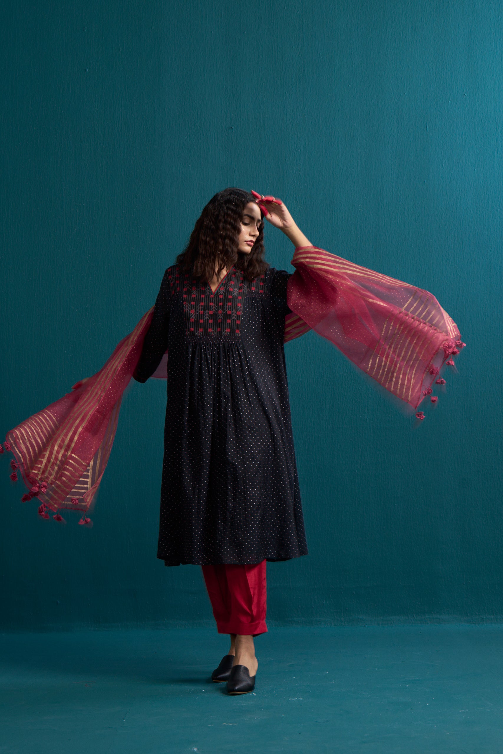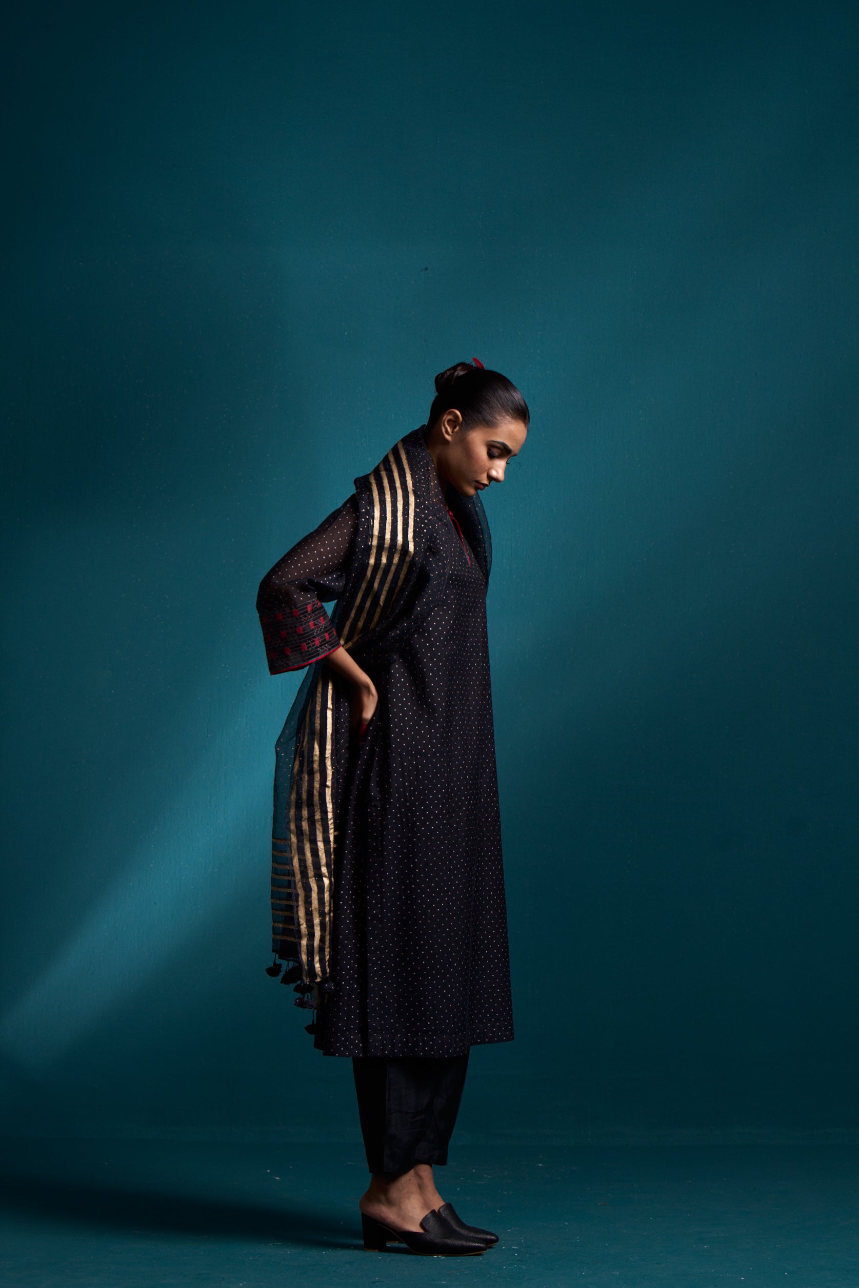 Our pleated pants are a modern take on the traditional shalwars. These are easy, contemporary and go as well with your kurta as with any other garment you'd like to team with. The shalwar pants are comfortable and easy with a unique pleated bottom featured here, allowing ease of movement, a more shaped and tapering feel. Ease, comfort and functionality are key to Indigene style and these pants is hand woven stripes fit right in the philosophy.