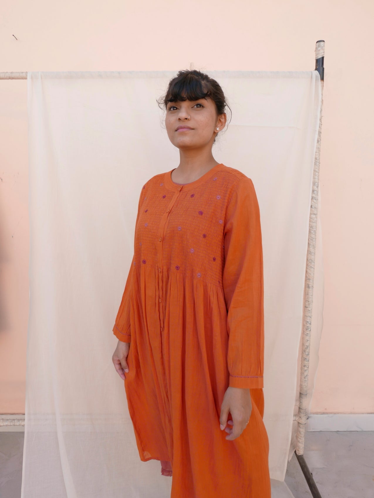 Poppy Embroidered Overlay & Pin-tuck Dress