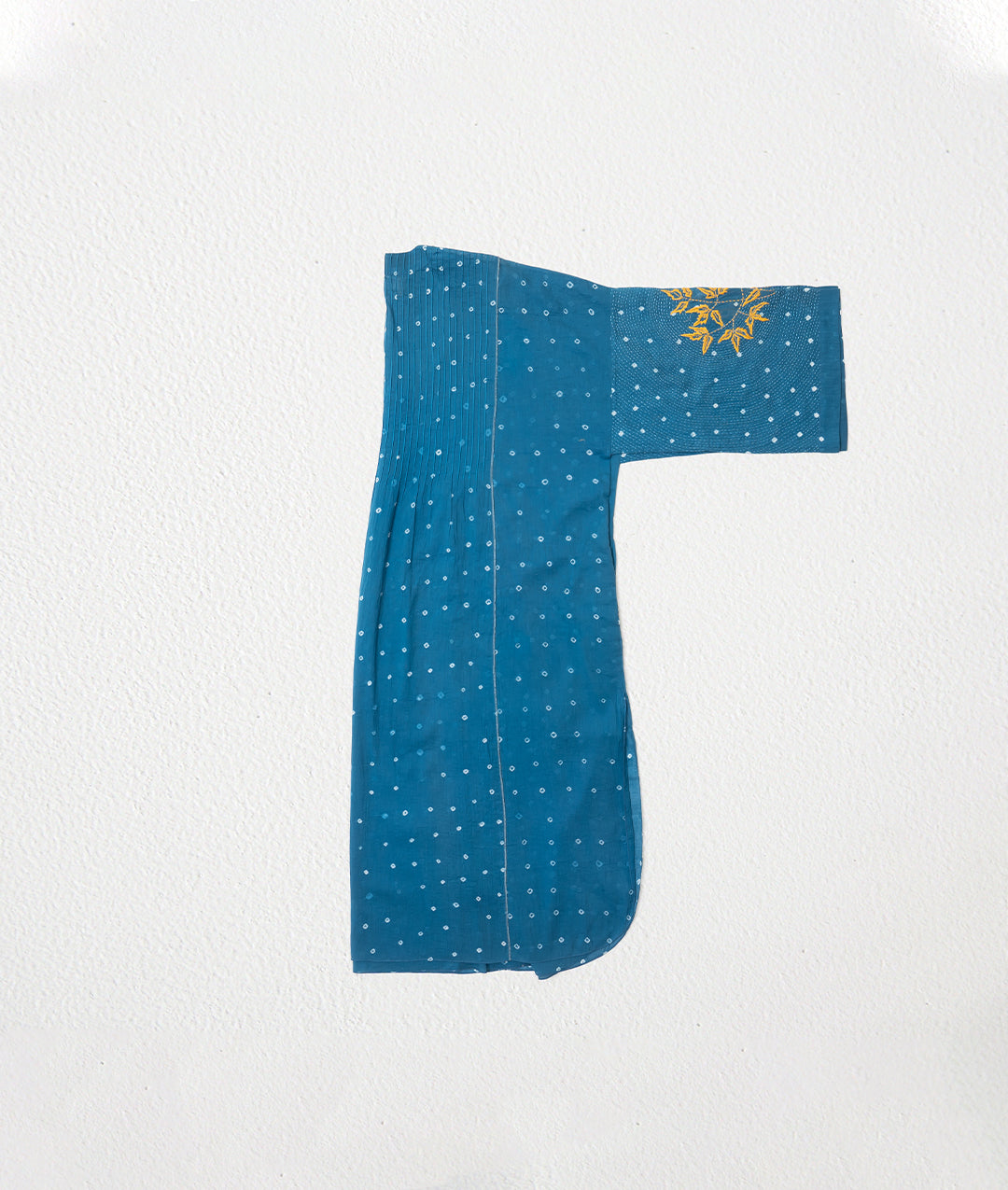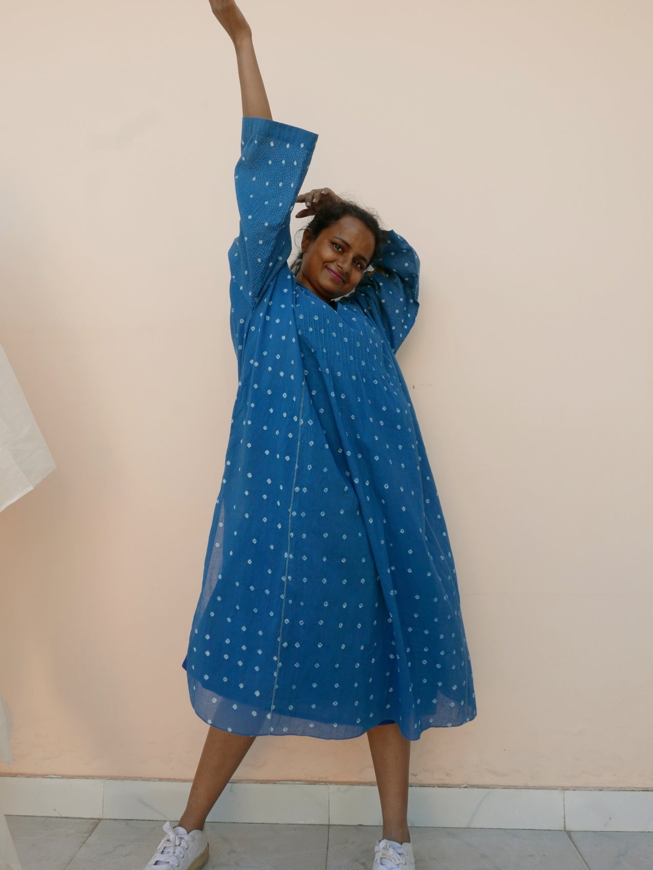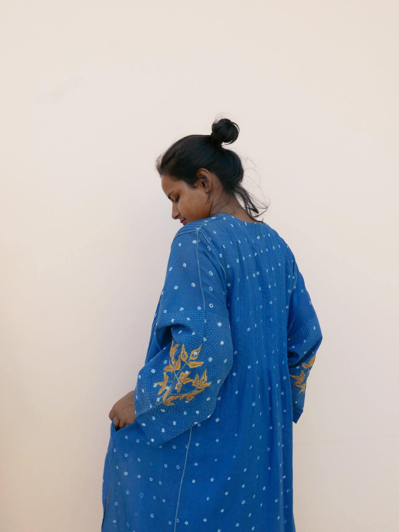 The Rania kaftan is the most comfortable garment you will get in this summer. The lightness of it's being is perfect to ward off hot days, cool off at a beach or just by your window at home in this most comfy outfit. Stay in all day, that is what kaftans are for. The tie-dyed textile and the hand embroidered details all over the dress make is a labour of love, and is a special garment to have.