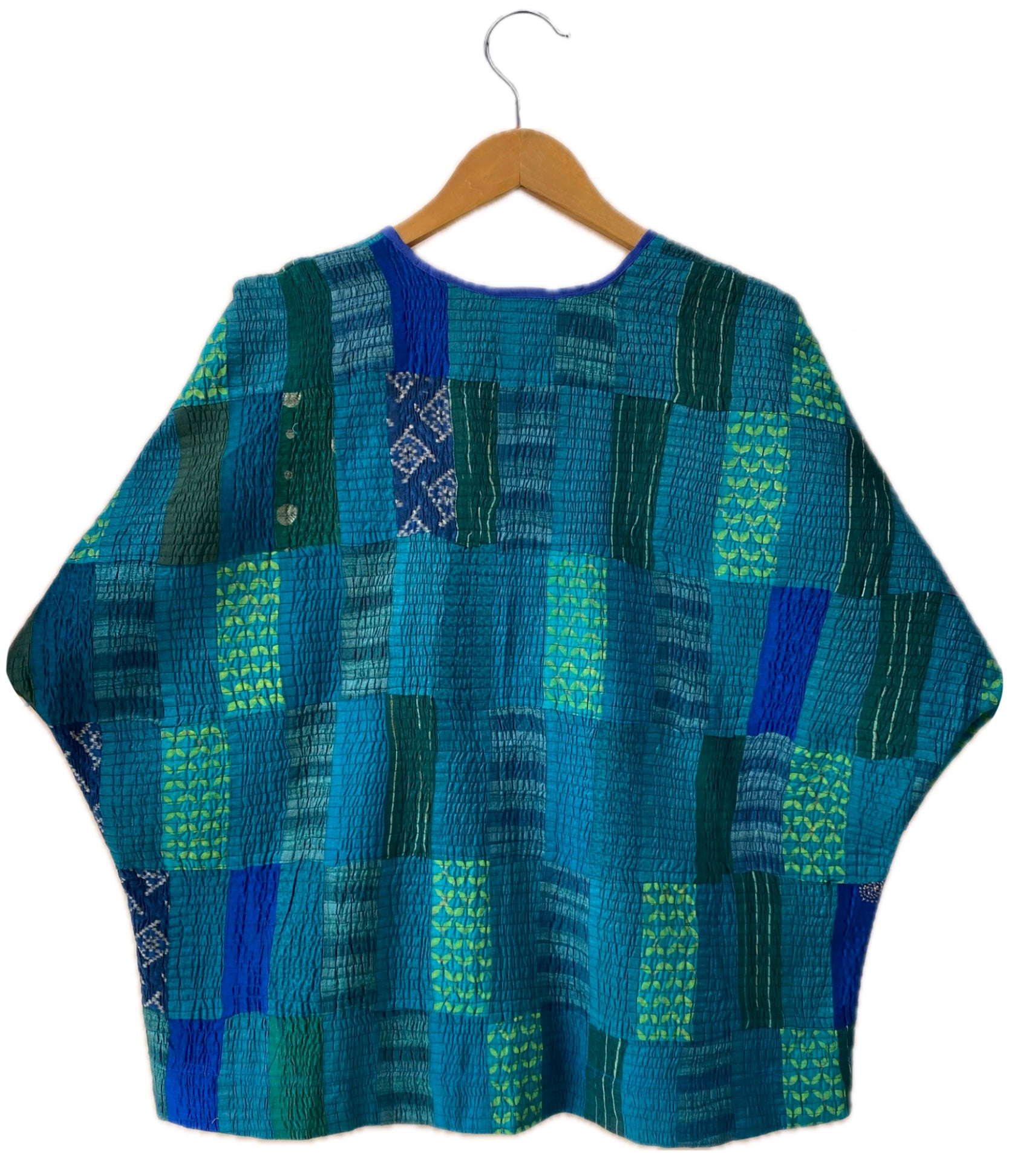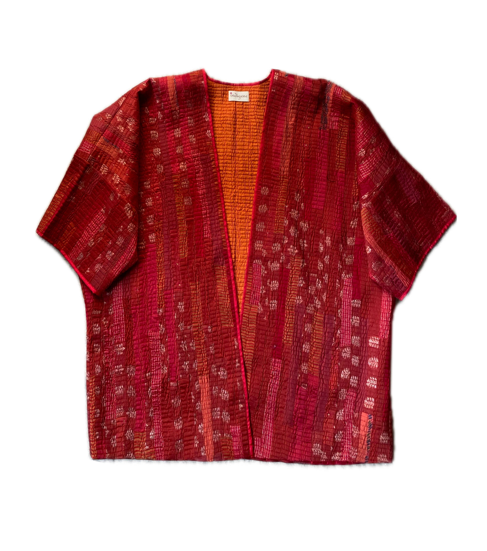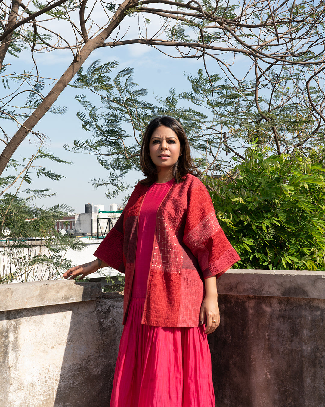 Sustainable by design, the Relove smocked shrug made from recycled fabric scraps and reject garments adds to the sustainability quotient in your wardrobe Slip on and feel special with this unique piece.