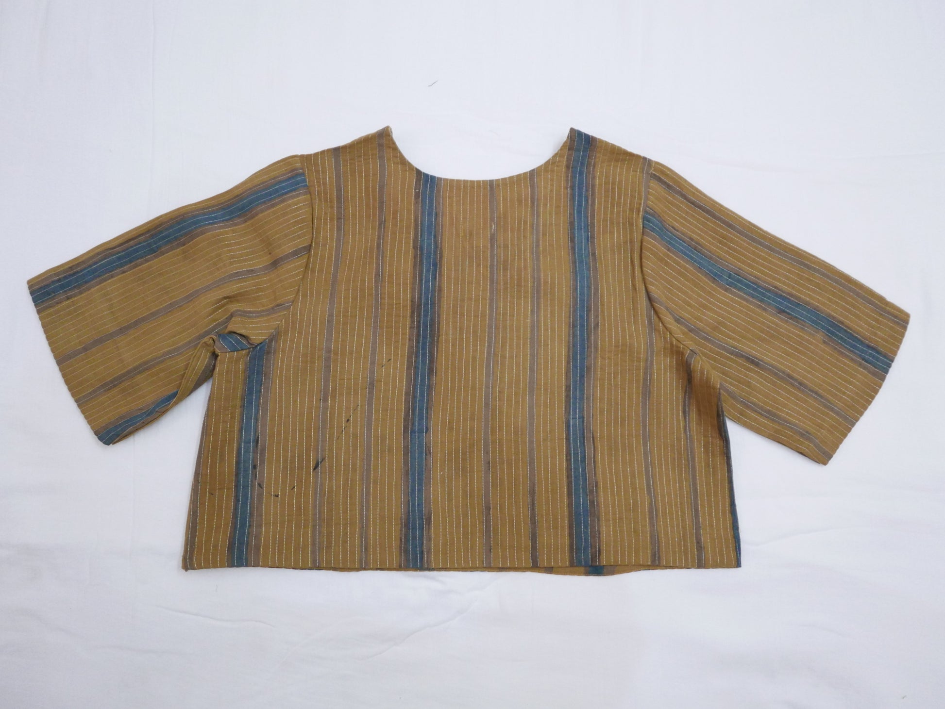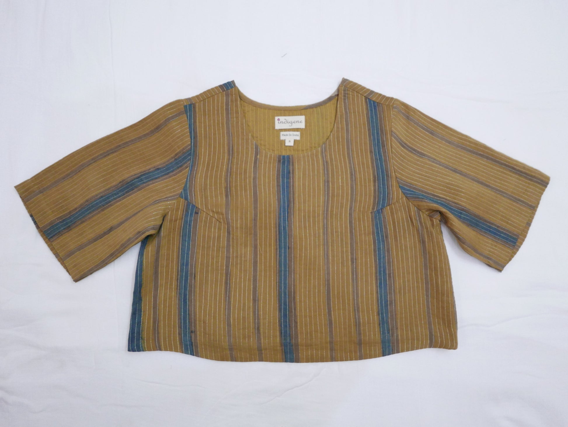 Round Neck Zari Quilted Blouse (Ochre Stripes)