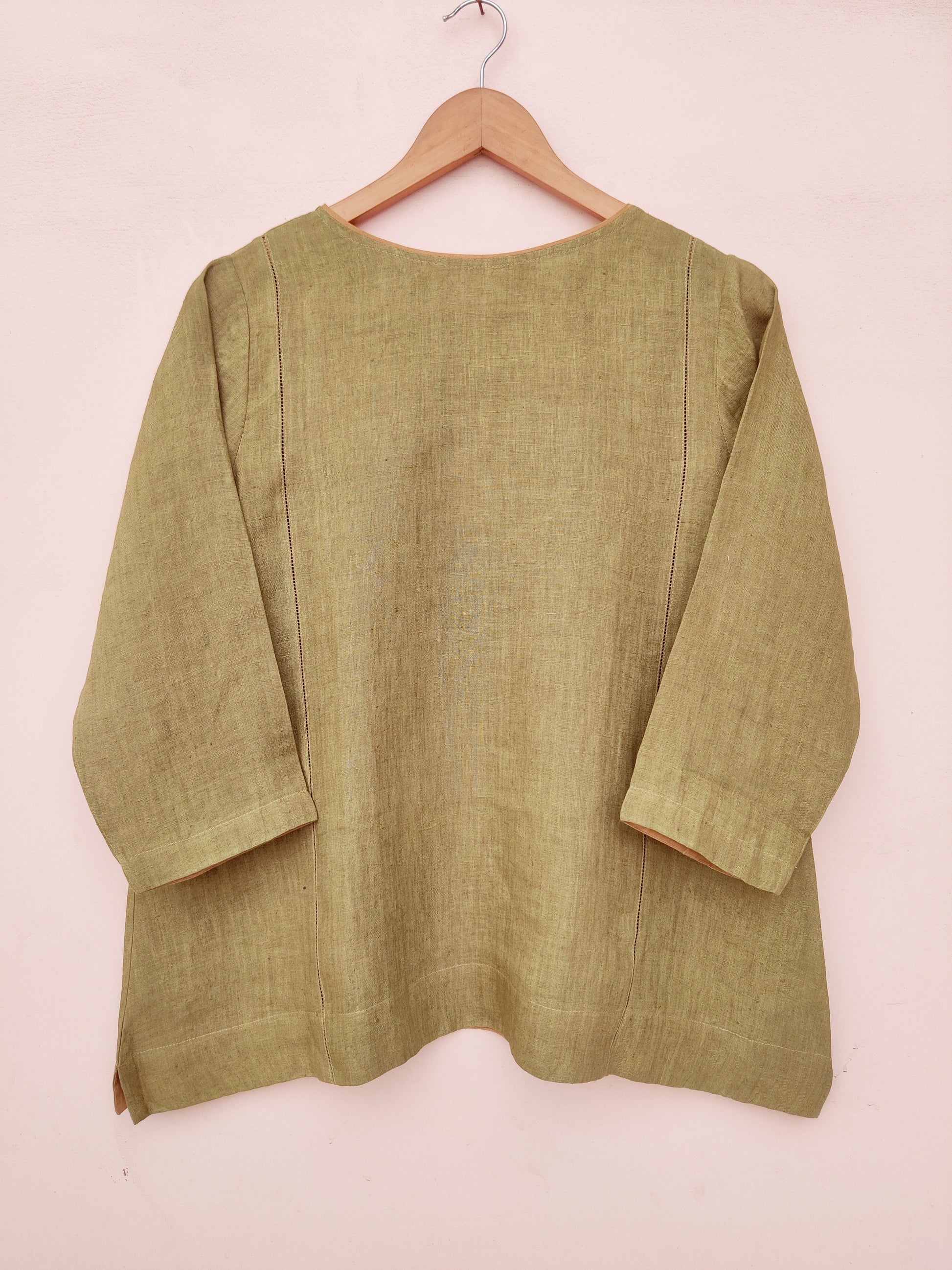 Saku; our hand woven linen top, is the perfect transeasonal garment. Perfect as a summer top and a great option to layer on when it gets a bit nippy. Classic and neutral silhoutte, makes it a no fuss, must have.