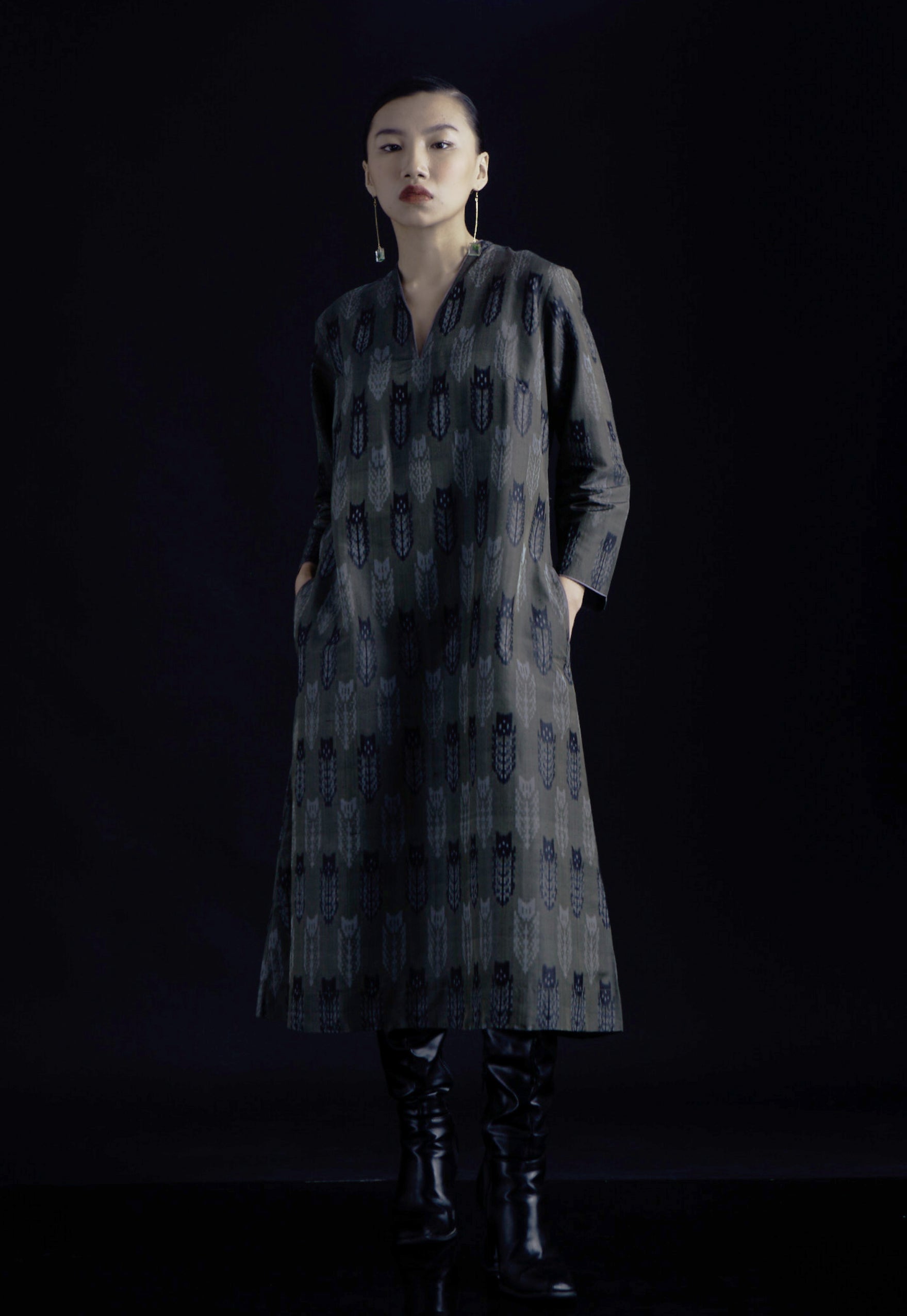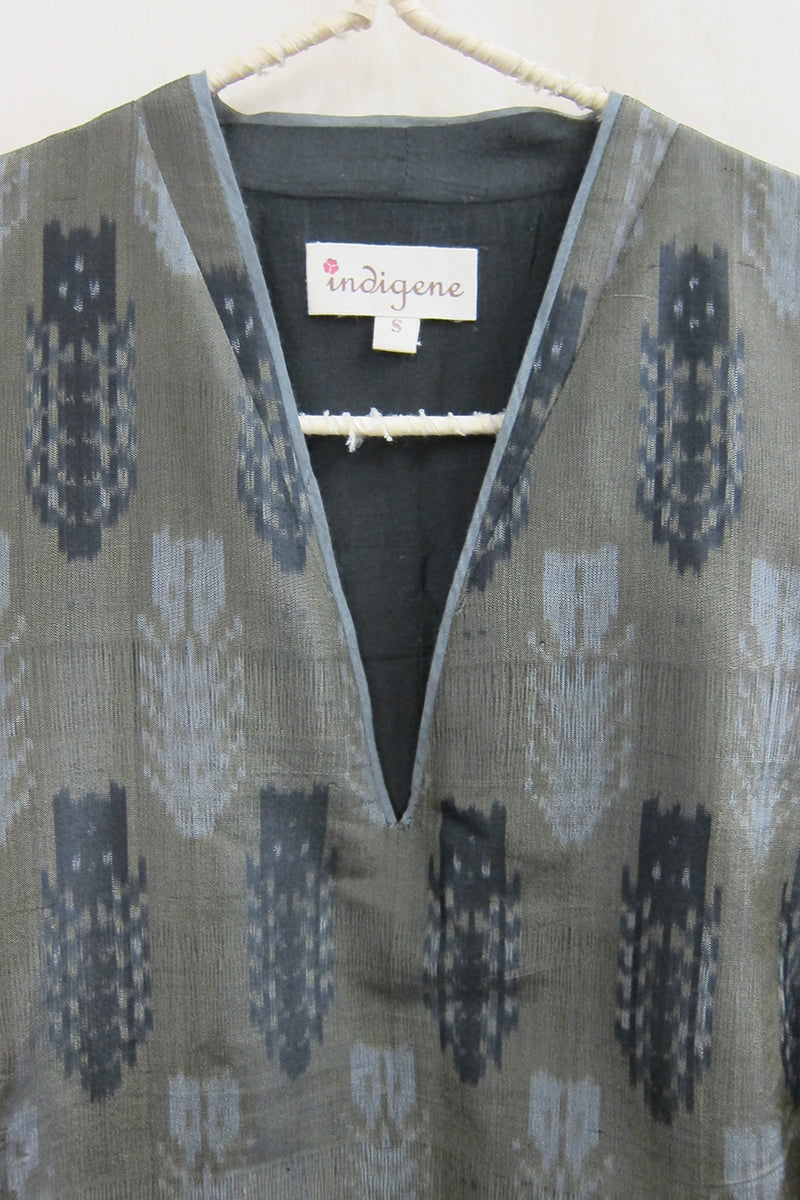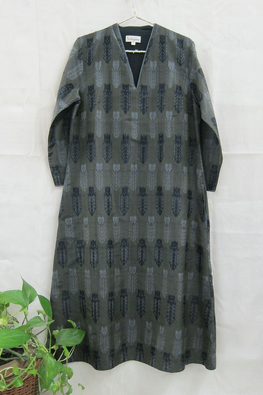 Our silk ikat Laila kurta is woven in 100% mulberry silk in the remote village of Putapakka, Telangana by master weavers of this craft. The quintessential kurta in woven geometric patterns and earthy olive tone is for those who like to create a subtle understated look.