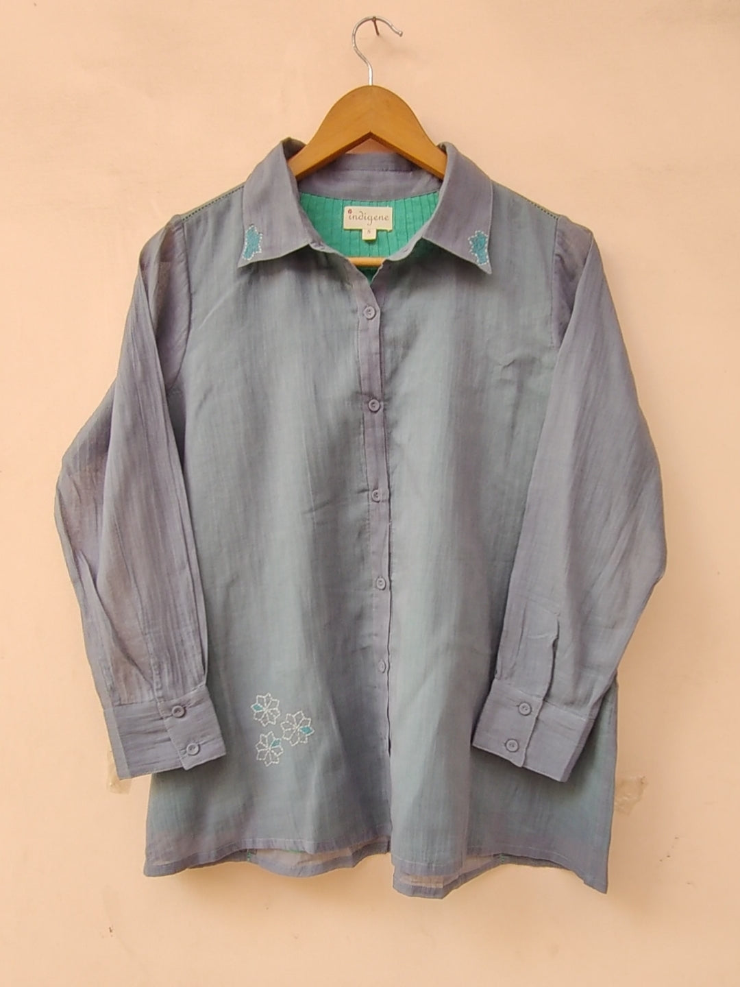 Light weight and versatile, our Yuri button down shirt makes for a great everyday garment to have. Ease, comfort and functionality are key to Indigene style and the Yuri shirt fits right in the philosophy. Team up the shirt with denims or one of our easy pants for a complete coordinated look if you like. Embroidery is an added detail to this subtle, classic garment.