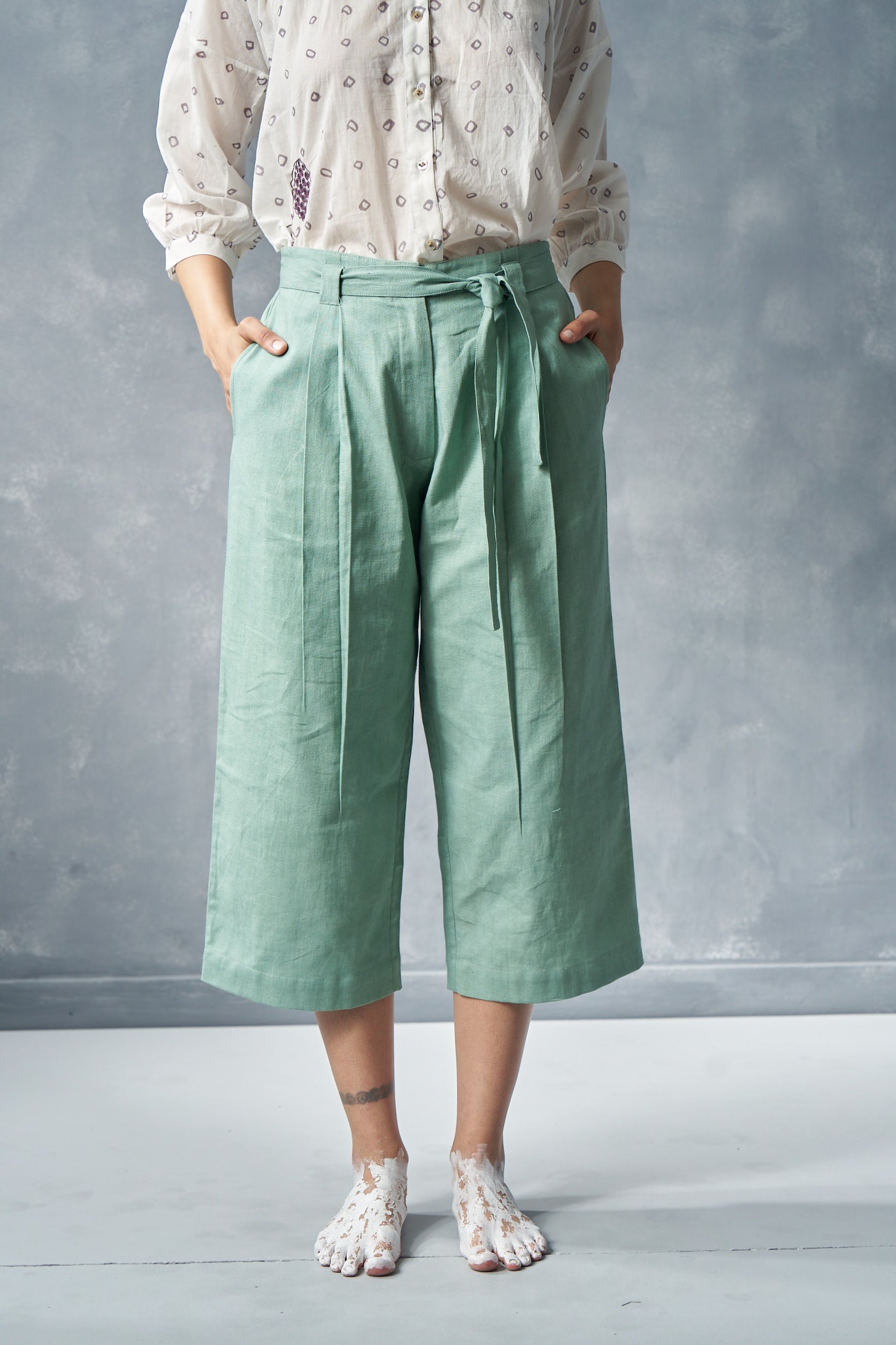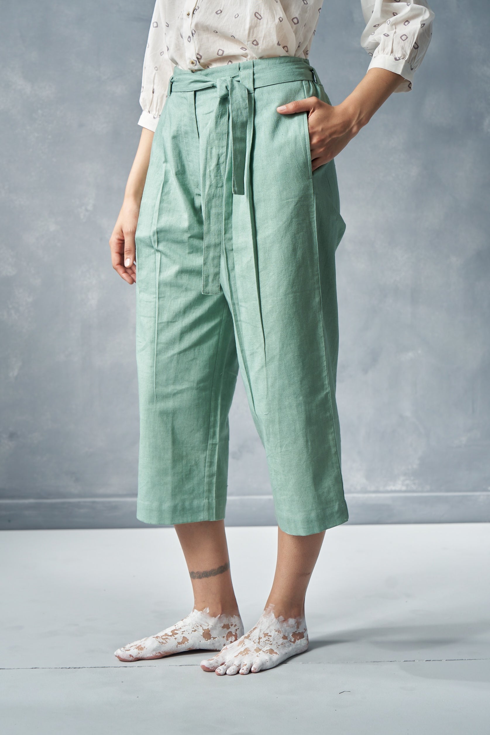 Embody casual comfort in the hemp blend Zena paper bag pants. Pleated front and seam pockets offer versatile wear, extra tie up belted for that added These stylish pants are ankle length, maintaining the perfect balance between form and function.